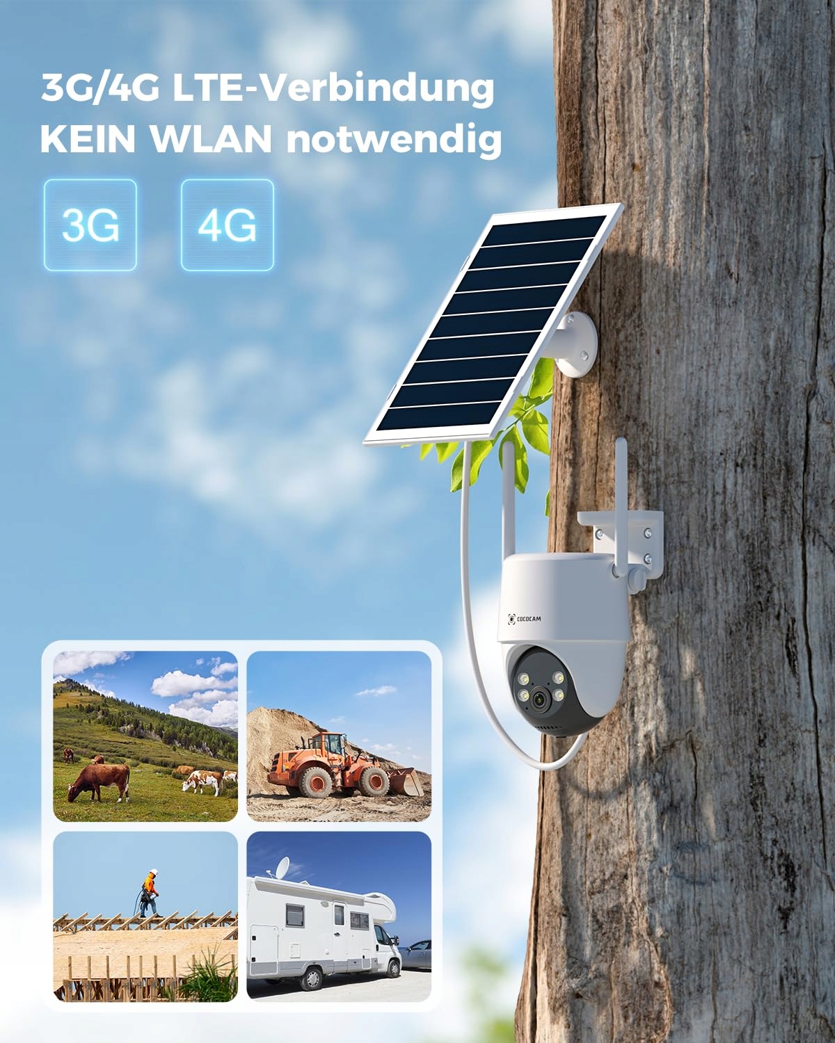 COCOCAM Kamera Zewnętrzna 4G LTE z SIM 15000mAh Solar 2K PTZ Nocna Wizja | Premium Supply