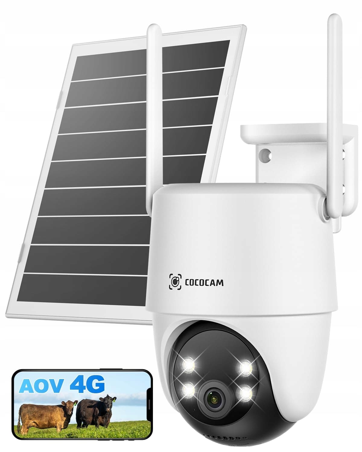 COCOCAM 24/7 nagrywanie AOV 4G LTE kamera monitorująca z kartą SIM na zewnątrz, akumulator 15000mAh, panel słoneczny 8W, kamera 2K PTZ na zewnątrz 4G, 30 metrów widzenia nocnego, rozpoznawanie AI, śledzenie AI, zawiera kartę eSIM