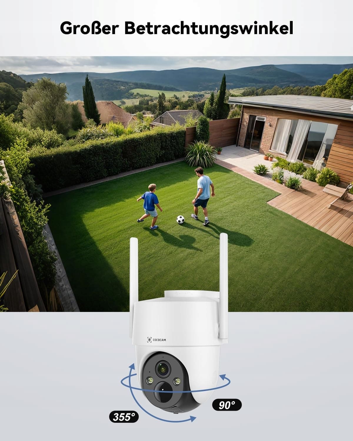 355°P 90°T & łączność WLAN 6: Dzięki obrotowi poziomemu o 355° i pionowemu o 90° ta kamera do monitoringu 4K oferuje kompleksowy nadzór. Razem z 5-krotnym zoomem cyfrowym w aplikacji (Cloudedge & COCOCAM). Skorzystaj z szybszych i stabilniejszych połączeń dzięki technologii WLAN 6, która zapewnia płynne przesyłanie strumieniowe i niezawodny monitoring.
