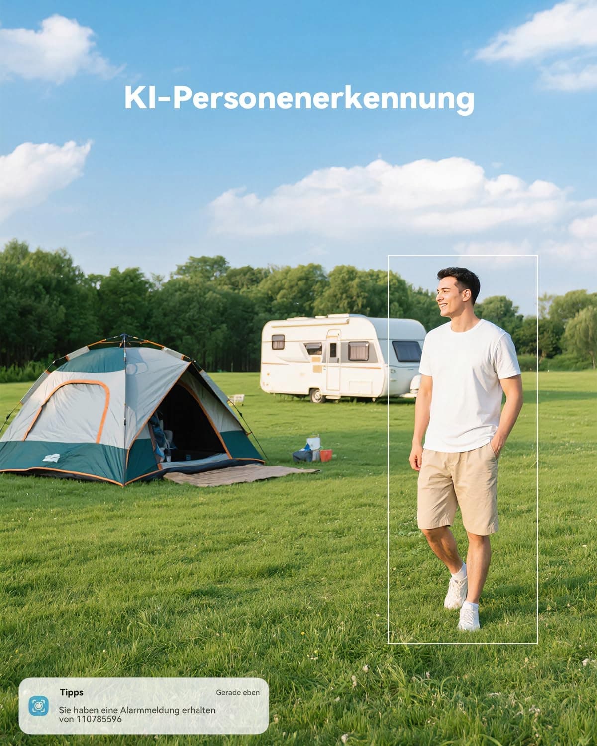 Wyjątkowa jakość obrazu i łatwość przenoszenia: Doświadcz krystalicznie czystych obrazów z naszą przenośną kamerą COCOCAM 4G o rozdzielczości 2K. Ta kamera 4G jest idealna dla osób prowadzących aktywny tryb życia. Bez problemu zmieści się w Twojej kieszeni i jest idealna na podróże oraz kemping. Jako kamera monitoringu bez Wi-Fi łączy się za pomocą profesjonalnej technologii 4G, dzięki czemu możesz ją zamontować wszędzie wewnątrz i na zewnątrz bez uciążliwej konfiguracji Wi-Fi.