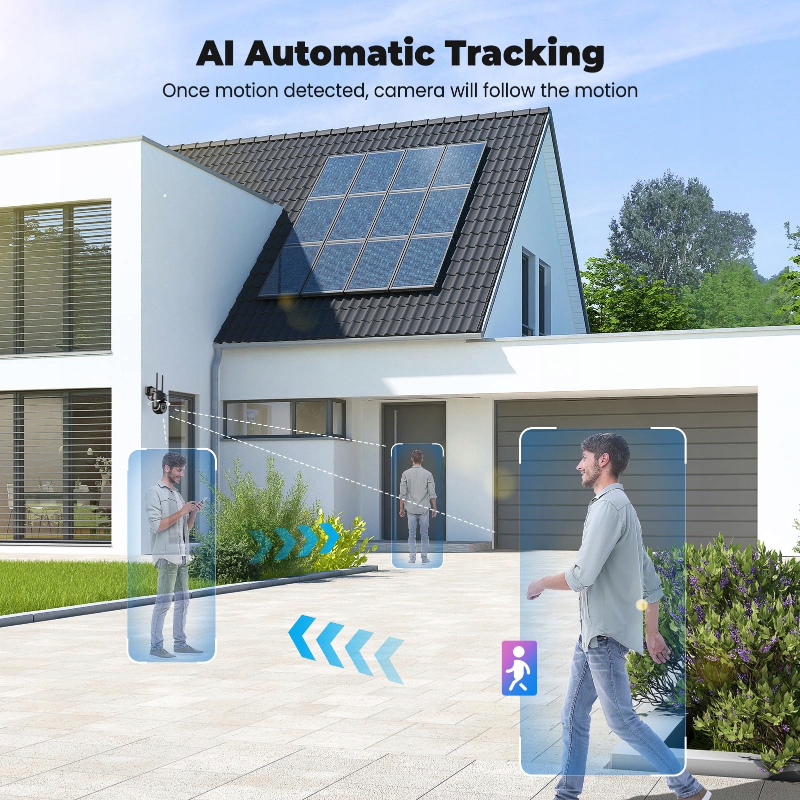 [Precyzyjne wykrywanie ruchu]-Zewnętrzna kamera WLAN precyzyjnie wykrywa osoby i ruchome obiekty, redukując niepotrzebne alarmy.Zawsze jesteś informowany na swoim smartfonie.