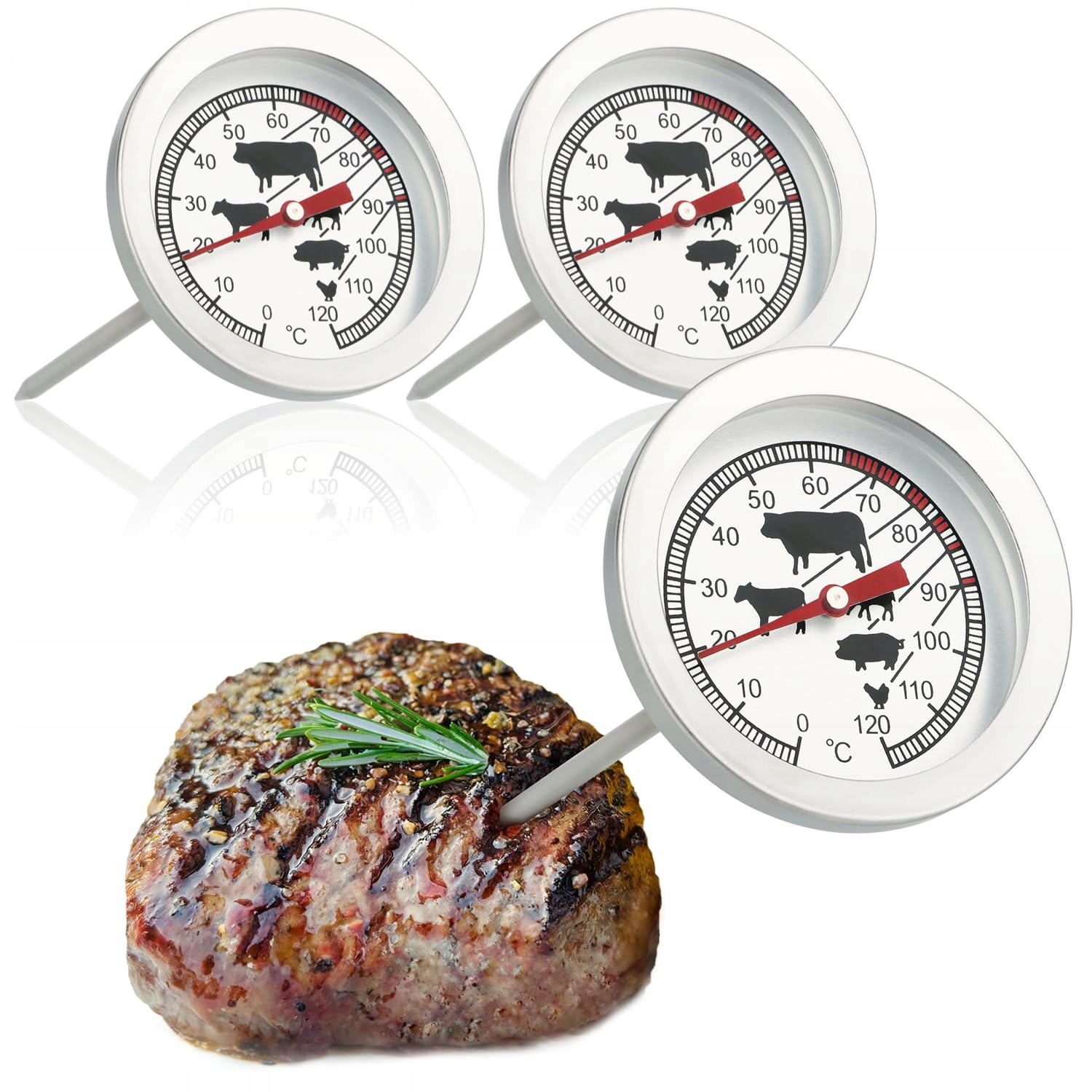 COM-FOUR Termometr Do Mięsa Ze Stali Nierdzewnej Analogowy 3 Sztuki