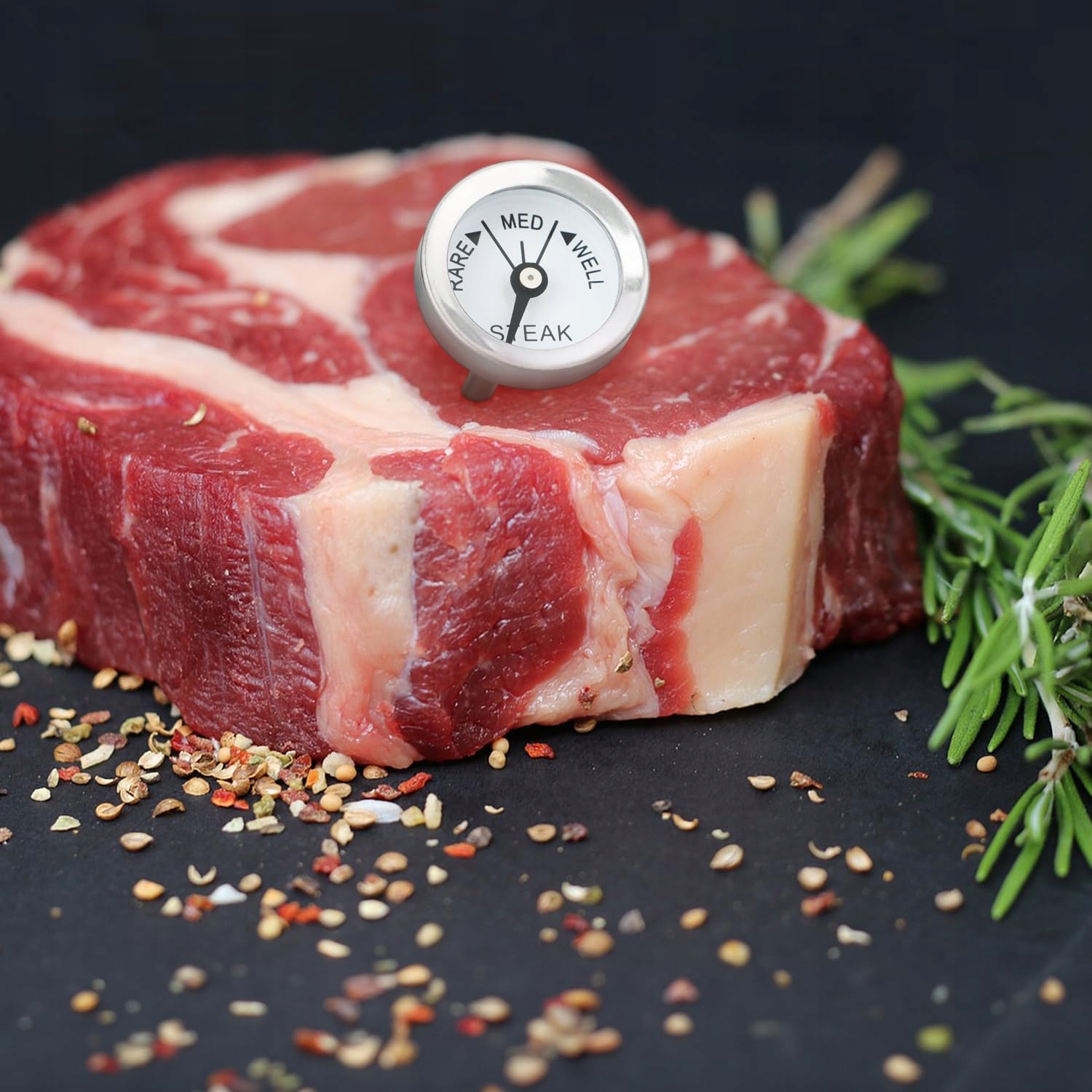 PRECYZYJNE GOTOWANIE: Praktyczny wskaźnik stopnia wysmażenia w Rare, Medium i Well pomaga w idealnym ugotowaniu różnych rodzajów mięsa, takich jak wołowina czy wieprzowina!