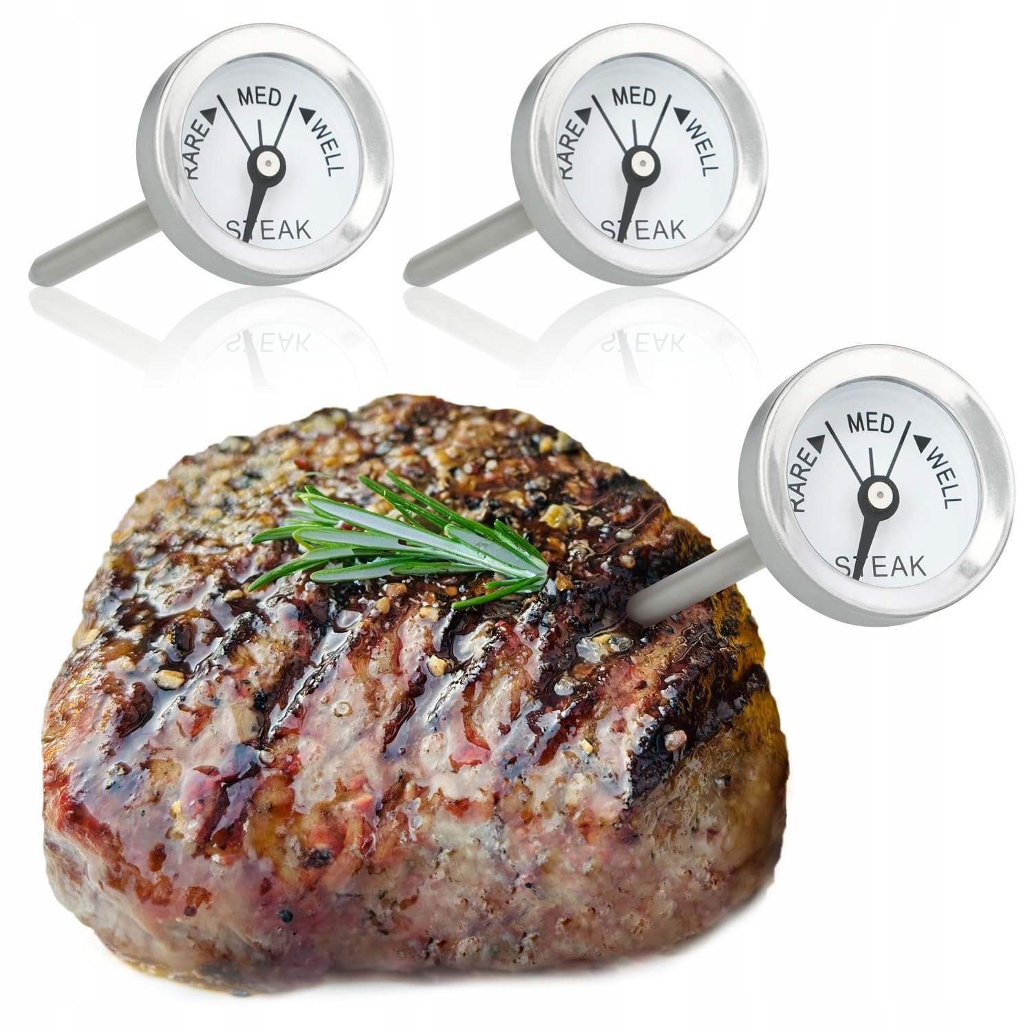 COM-FOUR Zestaw 3 Termometrów Do Mięsa Ze Stali Nierdzewnej Analogowy