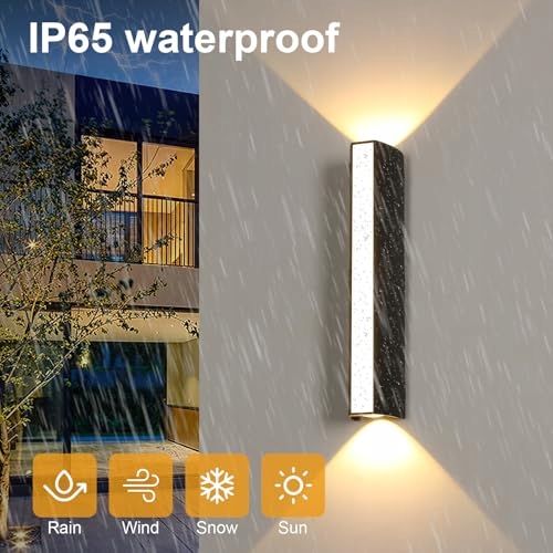 【Wodoodporność IP65】Lampa ścienna na zewnątrz posiada wodoodporną konstrukcję IP65, korpus lampy jest uszczelniony, wodoodporna powłoka skutecznie izoluje deszcz z każdej strony, odpowiednia do pełnej ekspozycji na warunki zewnętrzne, dobrze odporna na różne rodzaje deszczu, śniegu, mgły i innych trudnych warunków pogodowych