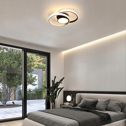 【Rozmiar produktu】42W lampa sufitowa LED (źródło światła LED nie jest wymienne). Ciepłe światło 3000K kolor obudowy: czarny, AC220V, wymiary: L400*W285*H60mm (15,75*11,22*2,36 cala), średnica 400mm
