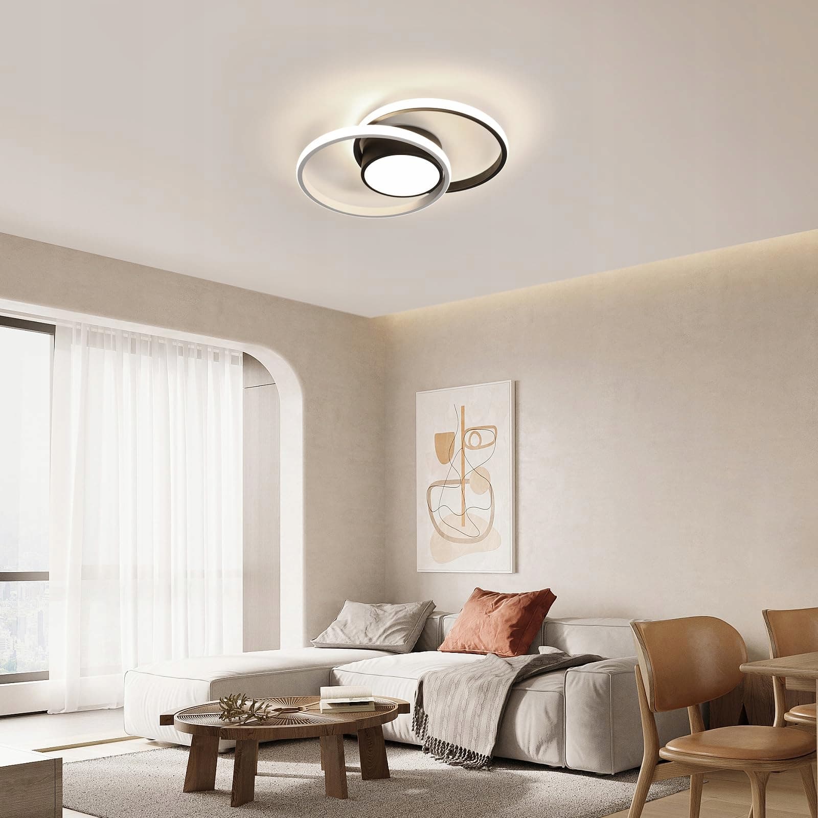 【Łatwa instalacja】Dzięki swojej prostej konstrukcji ta nowoczesna lampa jest łatwa do zamontowania na suficie lub ścianie. Nie wymaga dodatkowego montażu i potrzebna jest tylko jedna osoba do instalacji