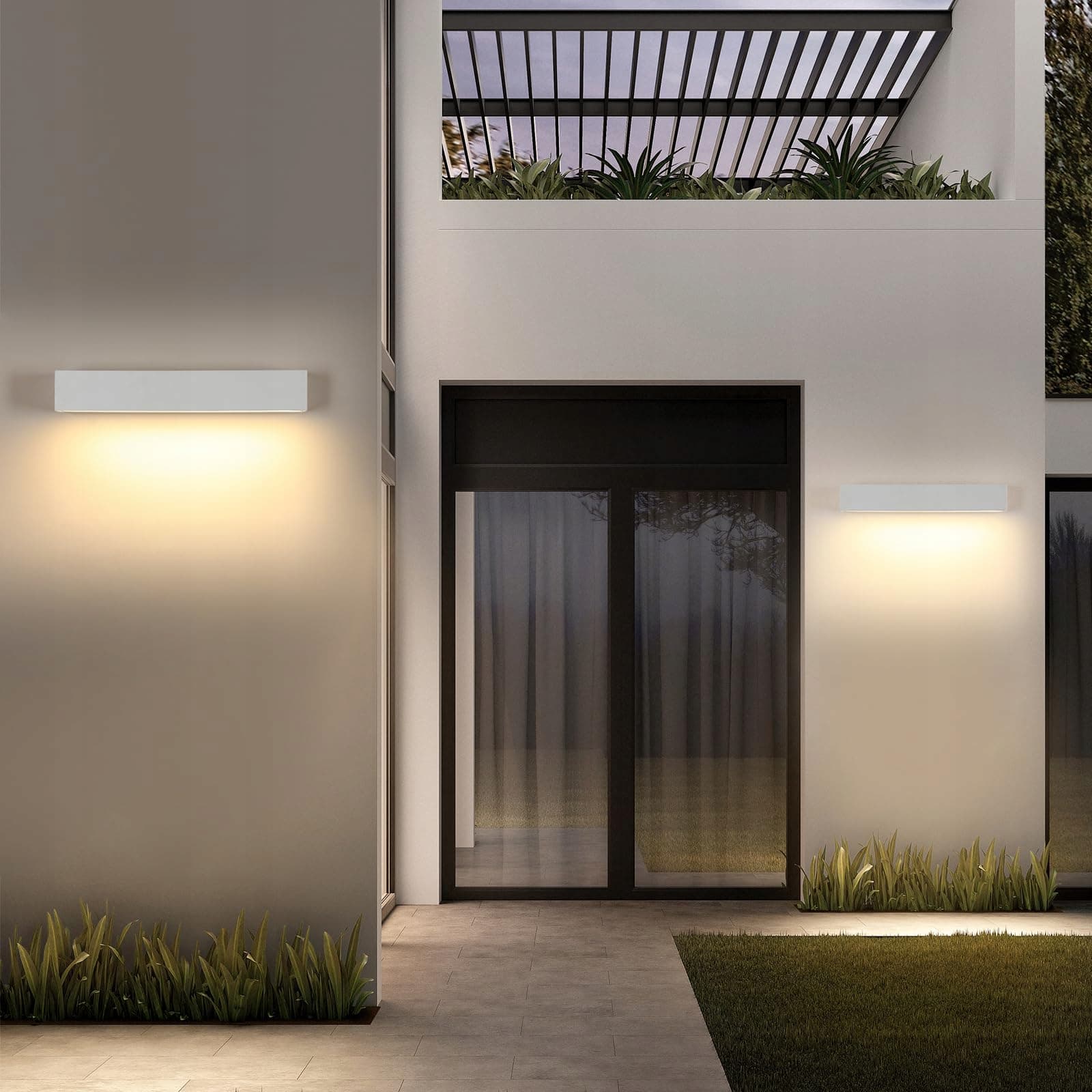Comely Lampa ścienna na zewnątrz/wewnątrz, 16W Nowoczesna lampa ścienna na zewnątrz IP65 wodoodporna, biała aluminiowa lampa ścienna na zewnątrz do ogrodu, wejścia, garażu, 3000K ciepłe światło