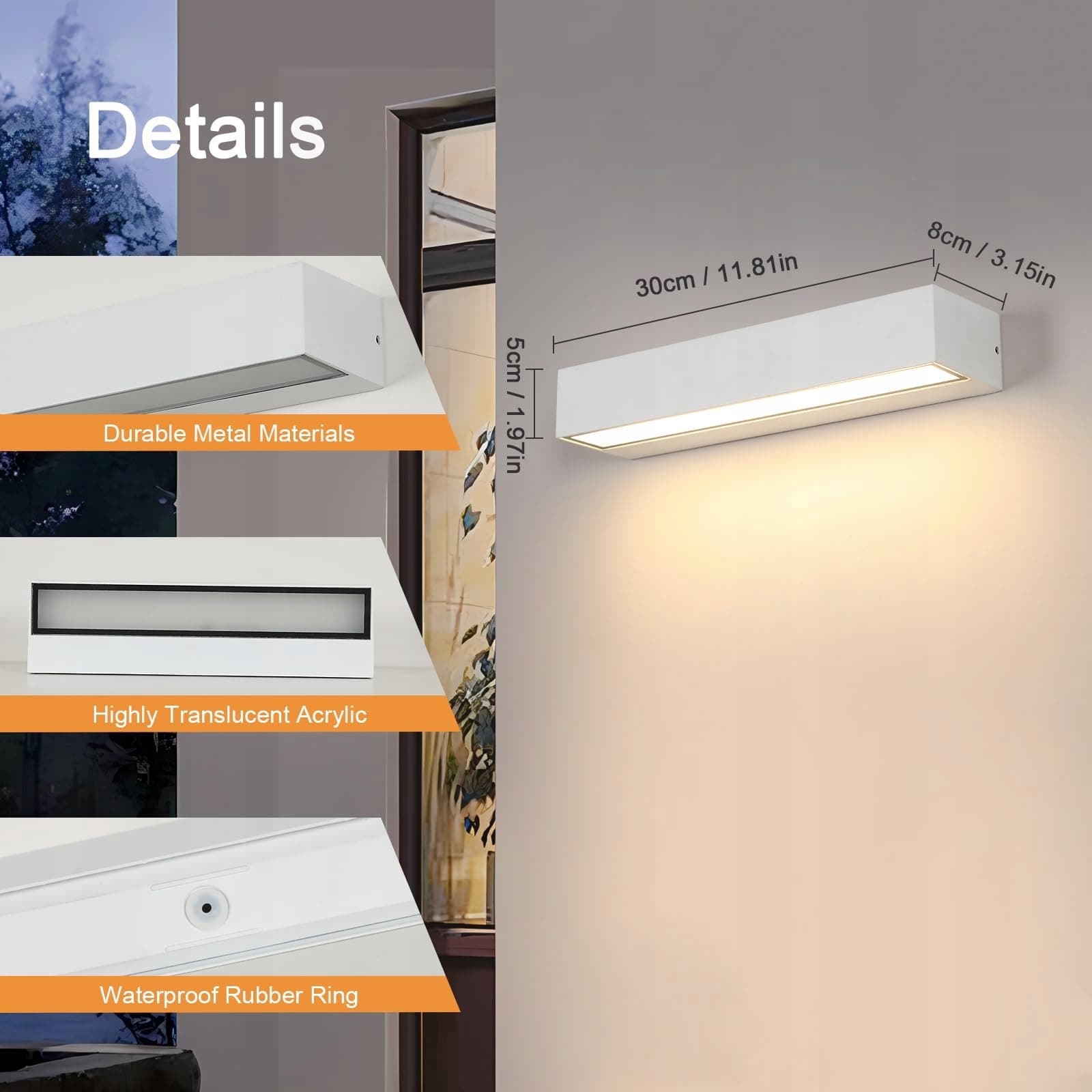 Nowoczesny minimalistyczny design: Ta lampa ścienna na zewnątrz ma prostokątny kształt z czystym i przestronnym wyglądem, który nie zajmuje dużo miejsca. Biała lampa ścienna wnosi odrobinę mody do Twojego domu, pasuje do różnych stylów dekoracji i tworzy ciepłą atmosferę
