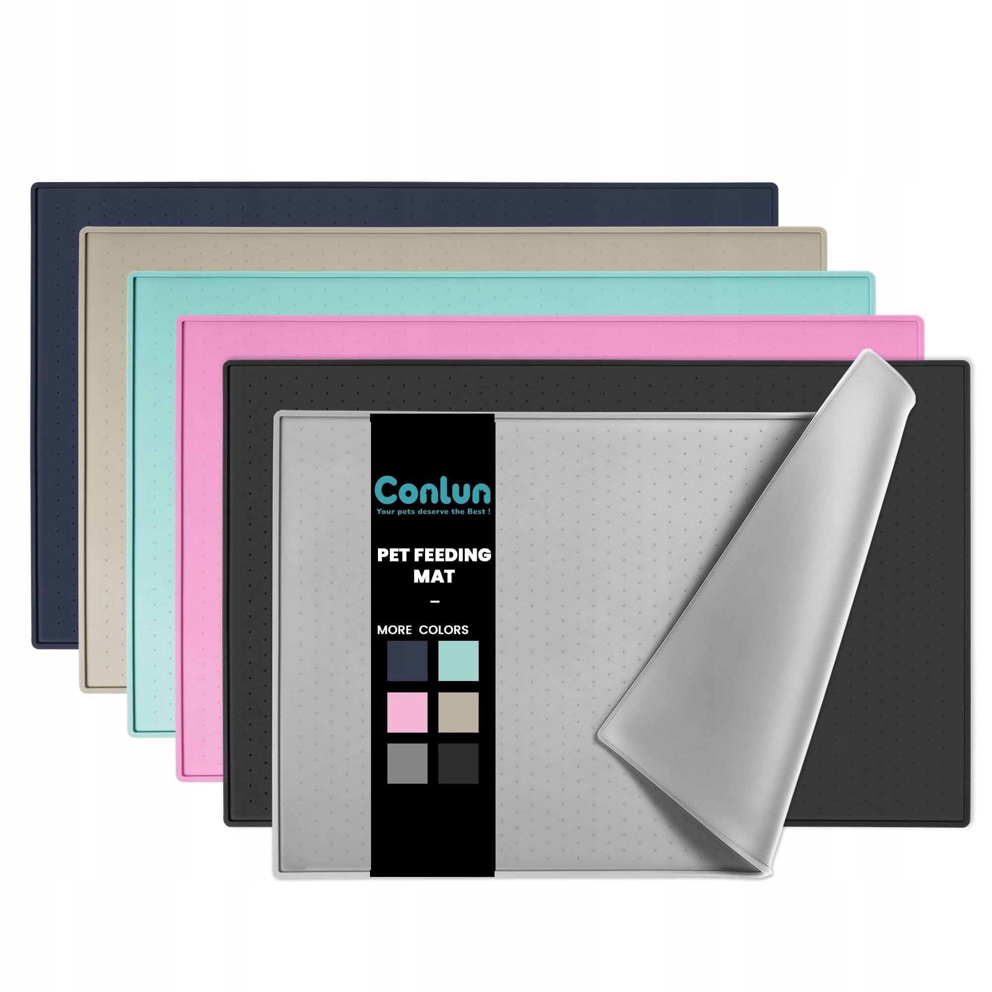 Conlun mata do karmienia dla psów i kotów, antypoślizgowy design, 100% wodoodporna mata do karmienia zwierząt, podwyższony brzeg, aby zapobiec wyciekaniu wody lub jedzenia, nadaje się do mycia w zmywarce