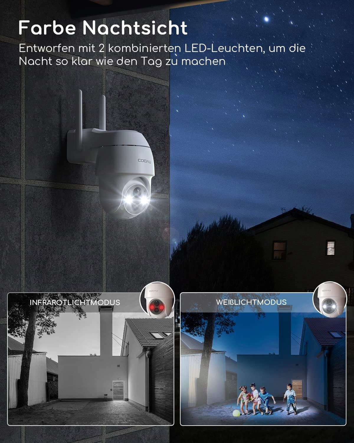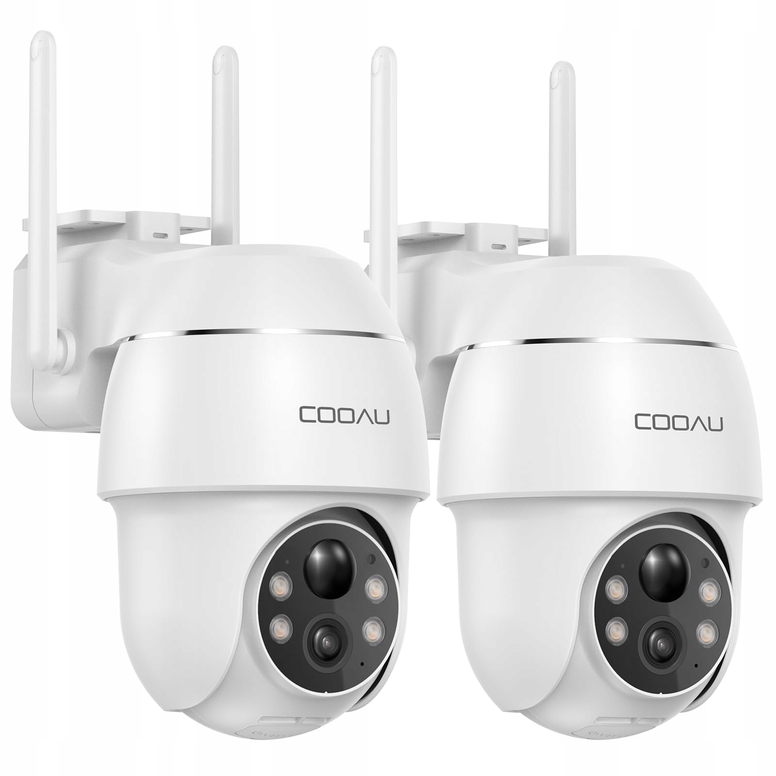 COOAU 2SZT Kamera monitoringu zewnętrznego na akumulator - 2K Bezprzewodowa kamera IP WiFi 6 PTZ na zewnątrz z łącznością Bluetooth, 4 reflektory kolorowa nocna wizja, inteligentne wykrywanie AI