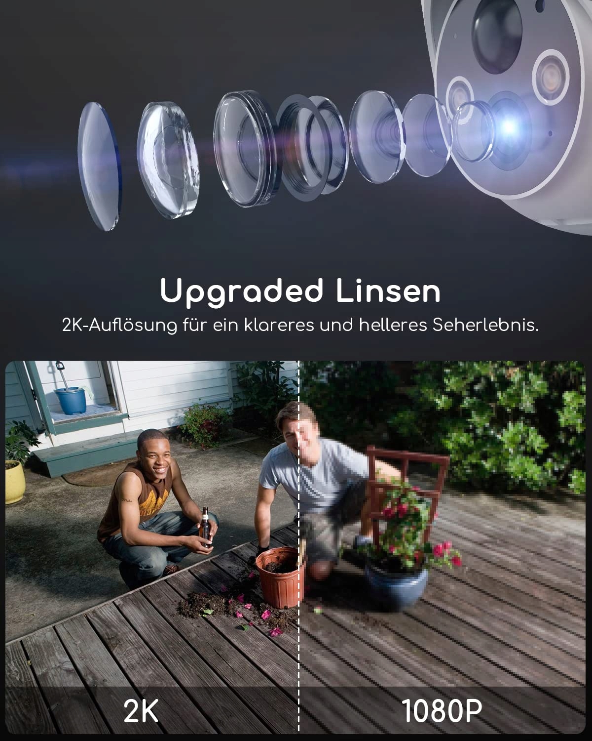 2K wyraźny obraz w dzień i w nocy dla bezpieczeństwa domu: Doświadcz 1,5 raza ostrzejszej klarowności dzięki rozdzielczości 2K niż 1080p. Kamera z 4 reflektorami zapewnia żywą kolorową nocną wizję i rejestruje ważne szczegóły, takie jak tablice rejestracyjne i narzędzia, nawet w całkowitej ciemności. A dzięki kątowi obrotu 355° i nachylenia 90° ta kamera zapewnia brak martwych punktów i pozwala mieć oko na każdy zakątek.
