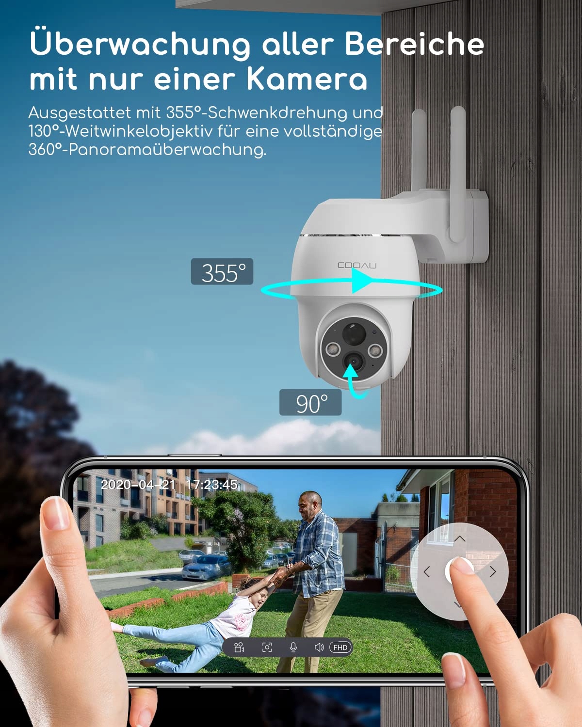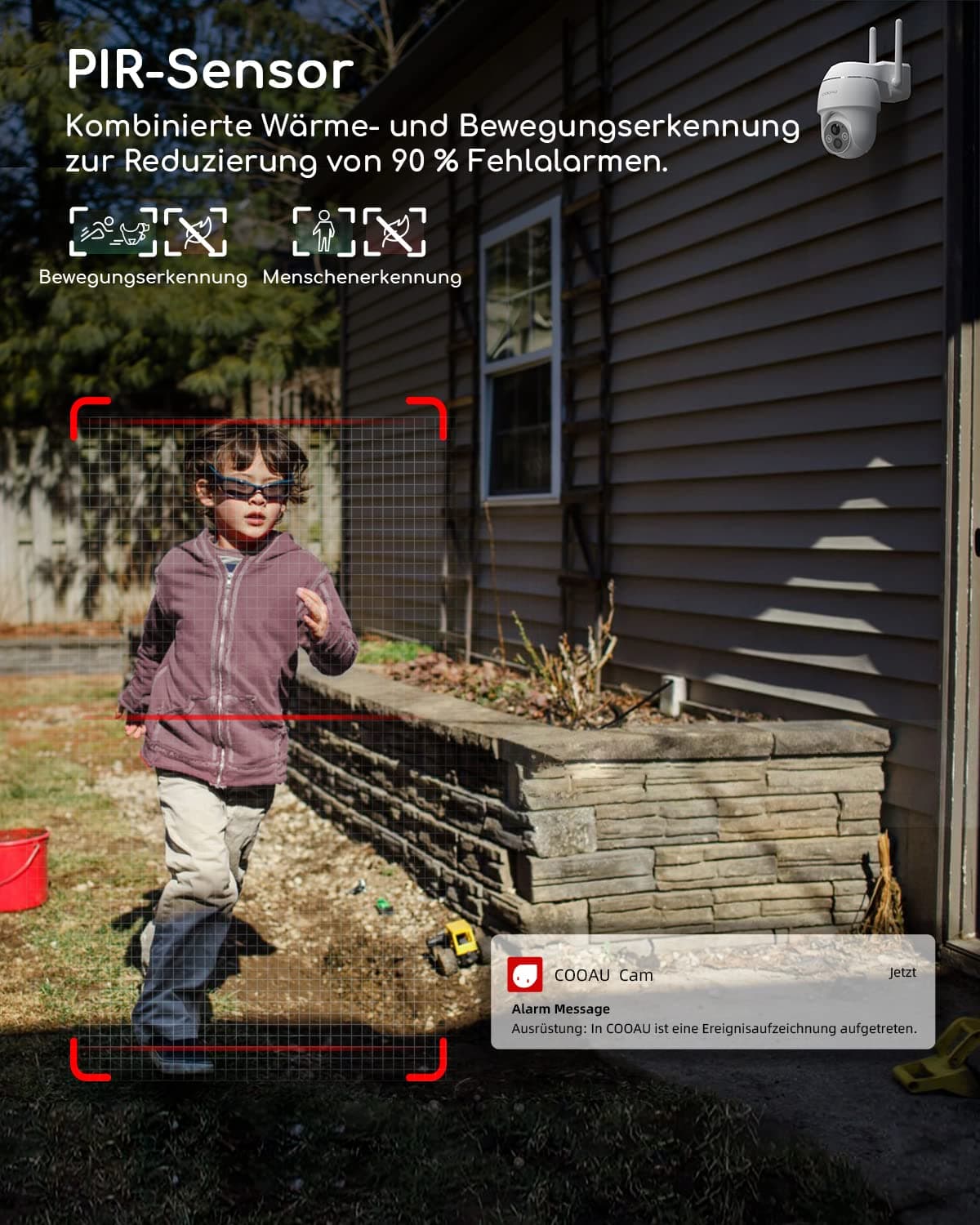 Zestaw kamer bezpieczeństwa COOAU dla Twojego bezpieczeństwa w domu: Wyposażony w tę kamerę PTZ do monitoringu, która obraca się, pochyla, kręci i obserwuje wszystkie sytuacje z przodu, z tyłu, z lewej i z prawej strony, dwie kamery wystarczą, aby zapewnić bezpieczeństwo Twojego domu.
