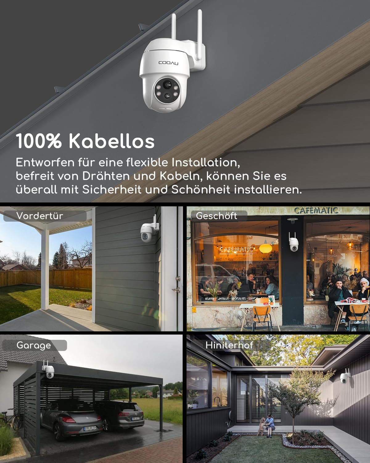 COOAU Kamera Zewnętrzna 2K Bezprzewodowa IP z Detekcją Ruchu IP66 | Premium Supply