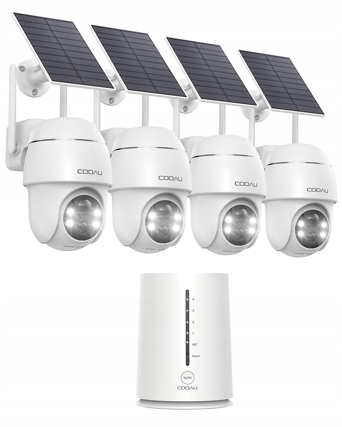 COOAU Zestaw Kamer Zewnętrznych 4MP Solar 2.5K Bezprzewodowe 360 Stopni