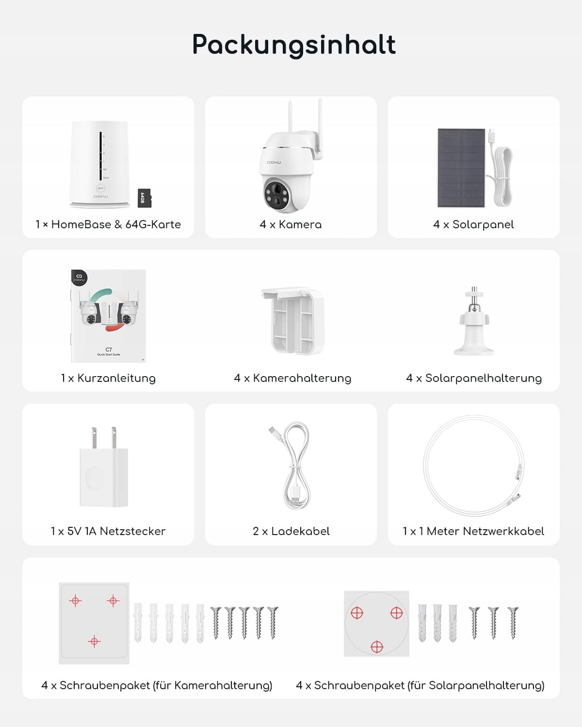 【Zabezpiecz cały swój dom】Oferujemy nową aplikację „ARCCTV” (niekompatybilną z COOAU Cam), uważaną za jedną z najprostszych aplikacji do zabezpieczenia domu, która doskonale współpracuje z systemem stacji bazowej - konfiguracja w 1 minutę. Wyposażona w 4 kamery PTZ z widokiem 360°, które pokrywają wszystkie kąty, możesz łatwo zabezpieczyć cały swój dom, od drzwi wejściowych po podwórko.