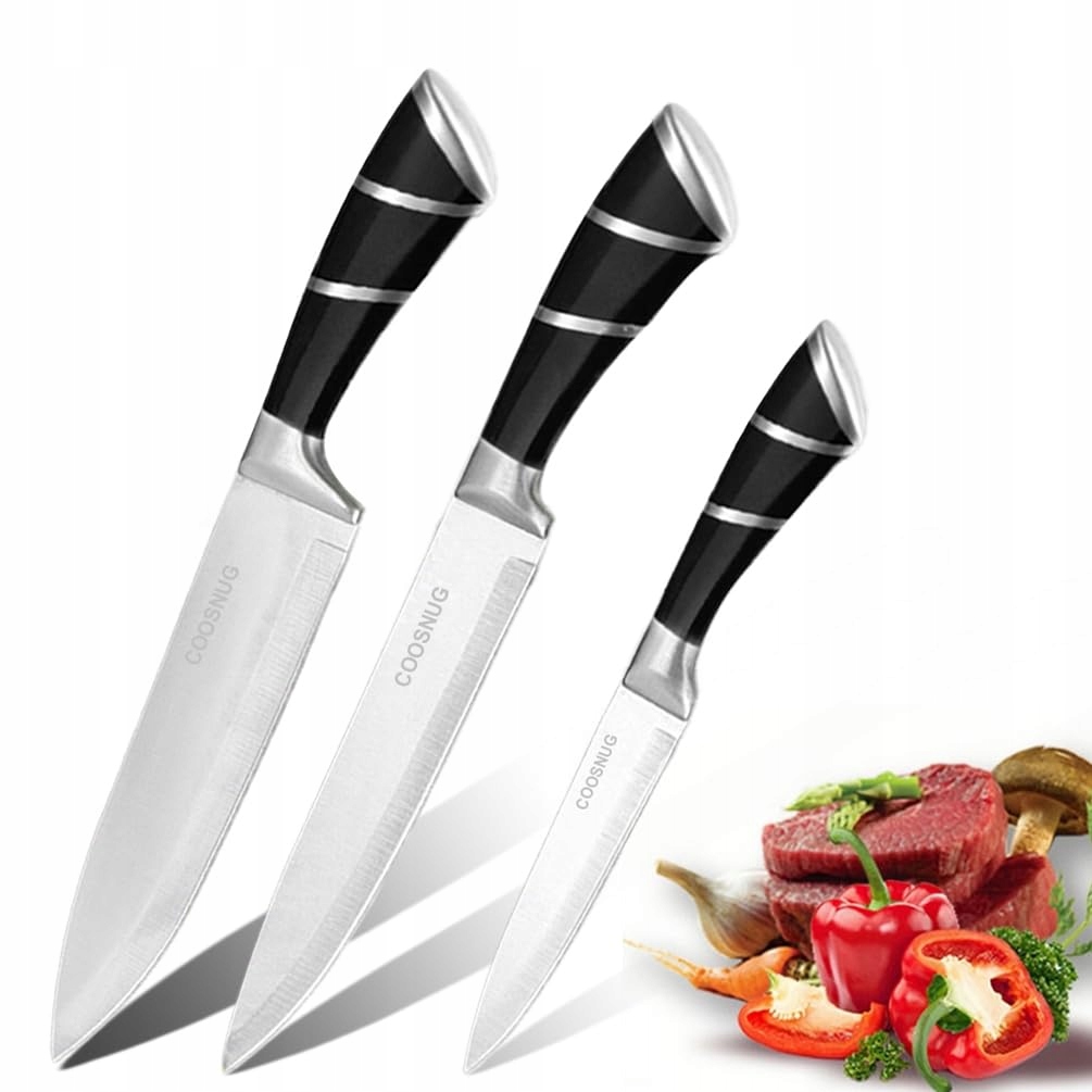 Zestaw noży kuchennych COOSNUG 3-częściowy ze stali nierdzewnej, dobrze wyważony, ergonomiczny