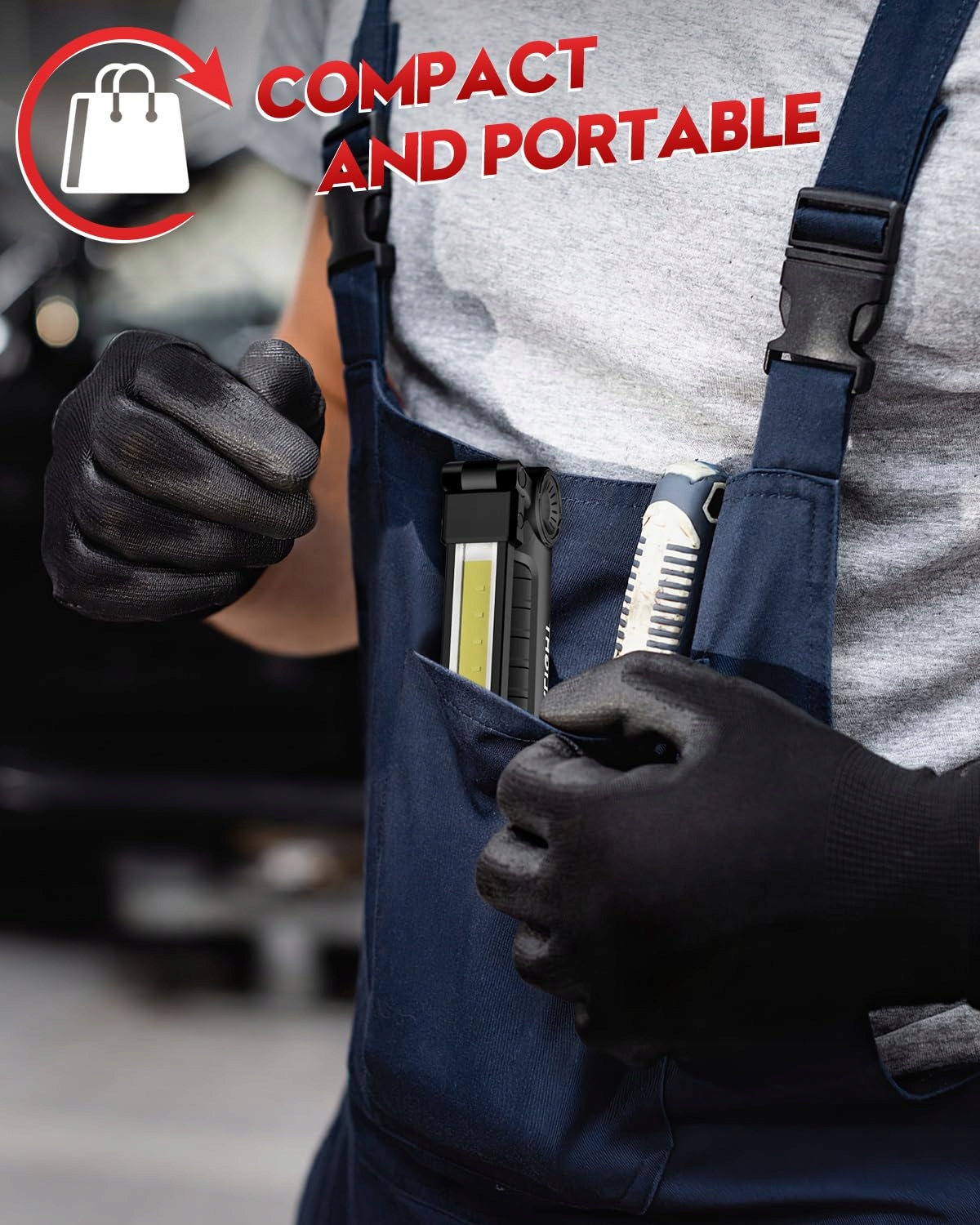 Kompaktowa i Przenośna: Ta lampa warsztatowa wykonana jest z twardej gumy, odpornej na spawanie i śliską; Dzięki składanej konstrukcji ta lampa inspekcyjna jest kompaktowa i lekka. Możesz ją schować do swojego samochodu lub torby narzędziowej, nie martwiąc się o zajmowanie miejsca.