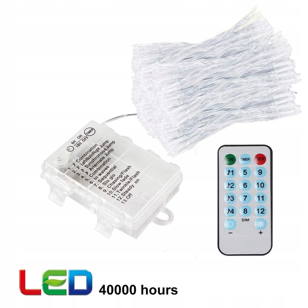 🌟Zasilanie bateryjne i pilot zdalnego sterowania: Zasilane 3 * bateriami AA (baterie nie są dołączone). Steruj łańcuchem świetlnym zdalnie z 5 poziomami jasności i 12 różnymi trybami. Funkcja czasowa zapewnia, że łańcuchy świetlne są włączone przez 6 godzin i wyłączone przez 18 godzin w ciągu dnia. Jeden pilot zdalnego sterowania obsługuje wiele sznurków