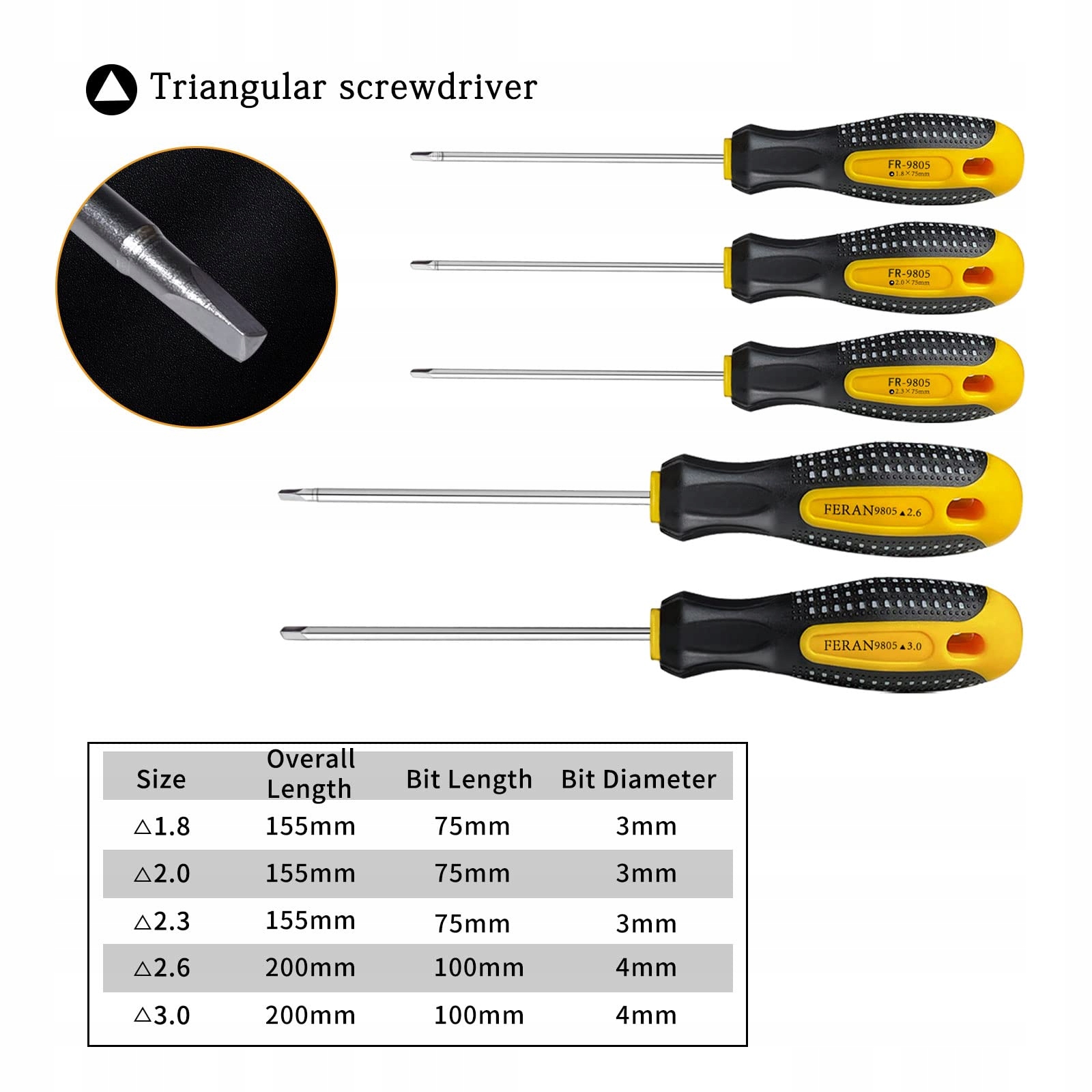 5-częściowy wkrętak trójkątny: Różne rozmiary: 1,8 mm 2,0 mm 2,3 mm 3,0 mm