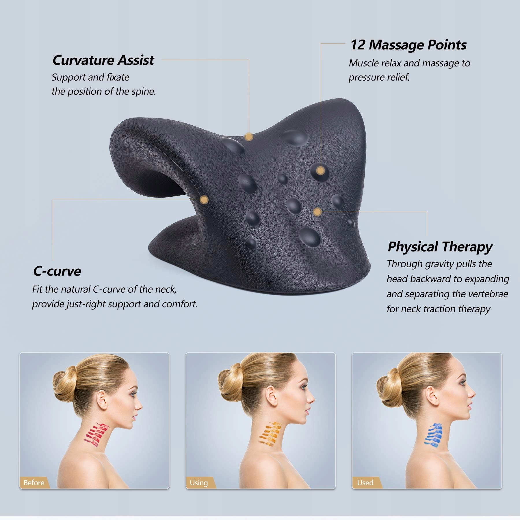 Cozyhealth urządzenie do masażu szyi i ramion, rozciągacz szyi do łagodzenia bólu szyi, poduszka chiropraktyczna do rozciągania szyi do poduszki na kręgosłup szyjny, poduszka relaksacyjna na szyję (czarna)