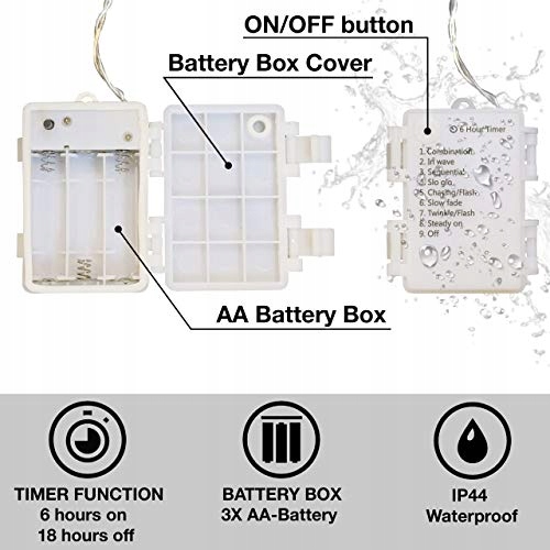 ✨ KOMFORT: Girlandy świetlne CozyHome na zewnątrz można intuicyjnie obsługiwać dzięki prostemu przełącznikowi na skrzynce na baterie (wymaga 3x AA) - Dodatkowo, wbudowany timer dekoracyjnego oświetlenia na zewnątrz zapewnia automatyczne włączanie/wyłączanie i zapobiega irytującemu odłączaniu wtyczki