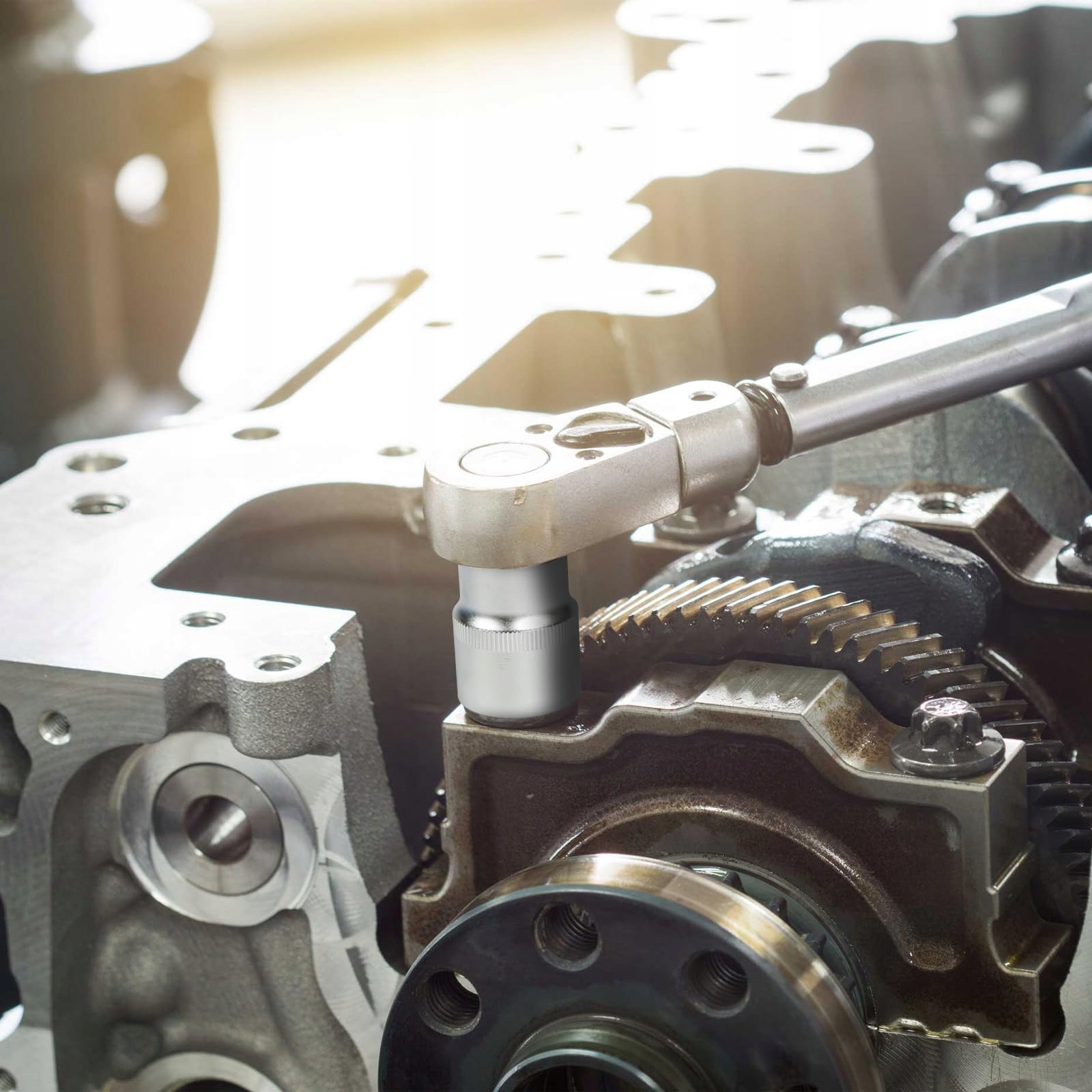 【Smukły design】: 12-zębny design klucza nasadowego zapewnia lepszy chwyt, zmniejsza ryzyko ześlizgnięcia się i umożliwia skuteczniejsze dopasowanie do śrub kształtowych, szczególnie w trudno dostępnych miejscach lub przy zardzewiałych śrubach.