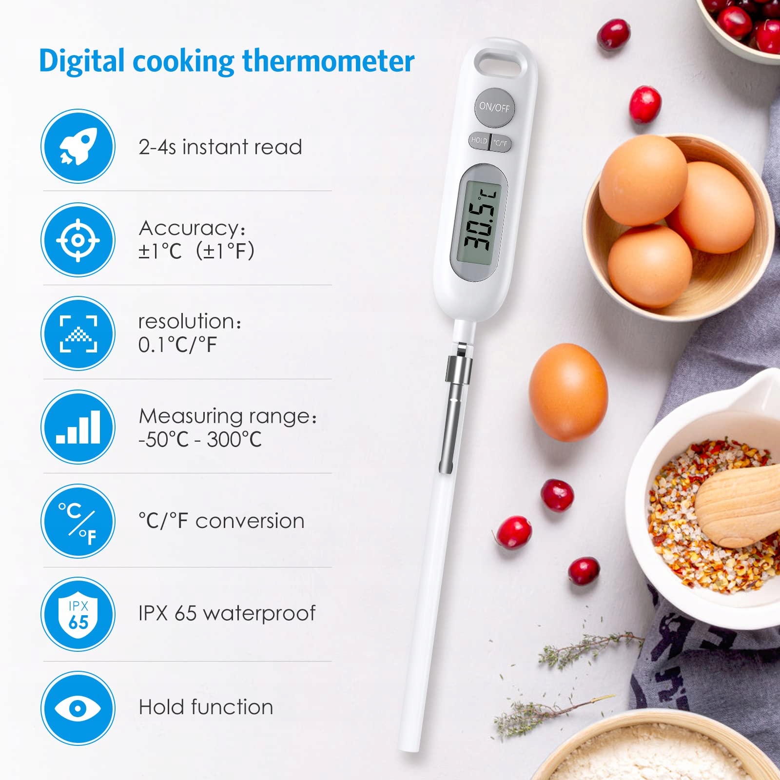 �szybki i dokładny - Termometr błyskawiczny dostarcza precyzyjnych pomiarów temperatury w ciągu 2-4 sekund. Posiada niezwykle wysoką dokładność ±1°C w zakresie pomiaru od -50°C do 300°C (-58℉ do +572℉). Łatwo rejestruje zmiany temperatury i przygotowuje pyszne potrawy.