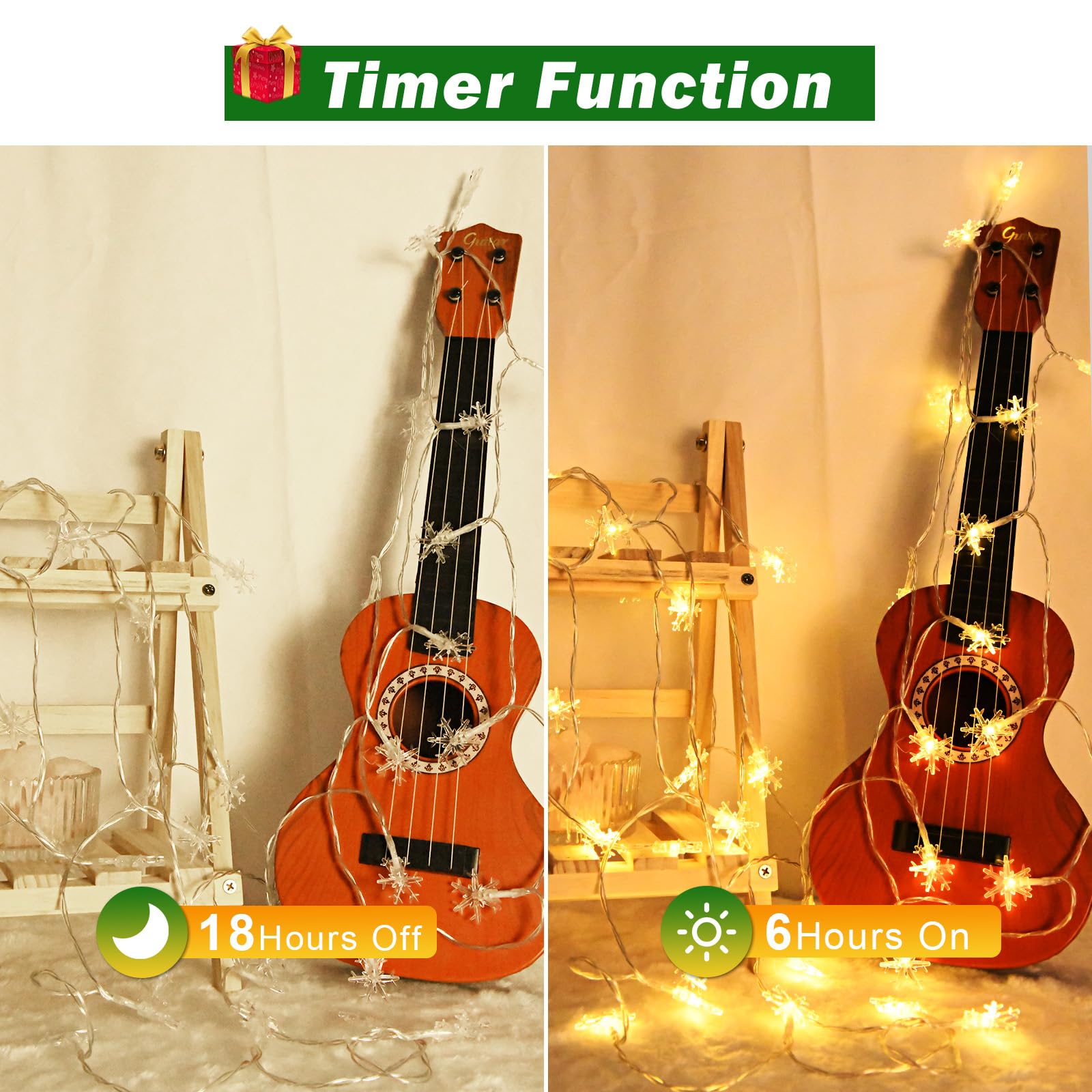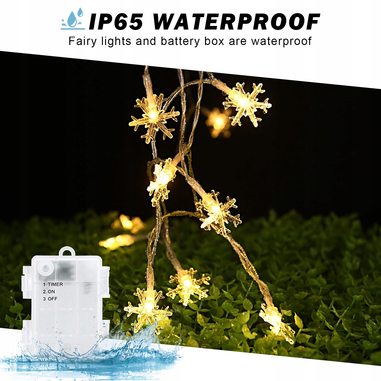 CSHARE Lampki Led Śnieżynki 6M 40LED Na Baterie Timer IP65 Wodoodporne