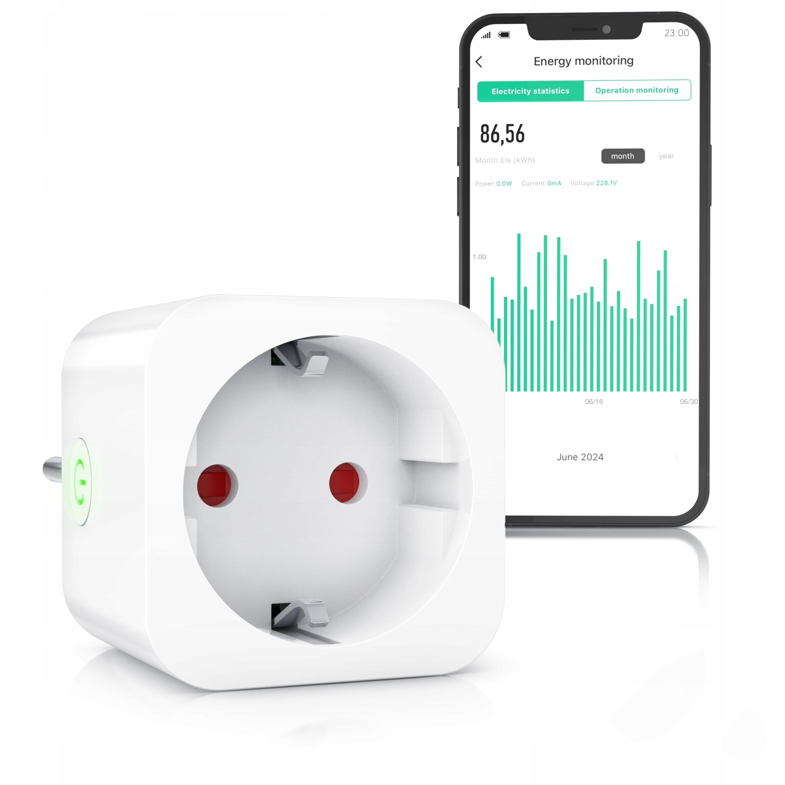 POMIAR ZUŻYCIA ENERGII W CZASIE RZECZYWISTYM: Dzięki wbudowanemu miernikowi kosztów energii monitorujesz swoje zużycie energii w czasie rzeczywistym, sprawdzasz zużycie energii i redukujesz koszty energii. Aplikacja pokazuje zużycie energii podłączonych urządzeń w czasie jako graficzną reprezentację. Idealne np. dla lamp, wentylatorów, ekspresów do kawy i wielu innych. Wymaganie: zużycie wynosi 3 waty lub więcej (brak pomiaru w trybie czuwania).