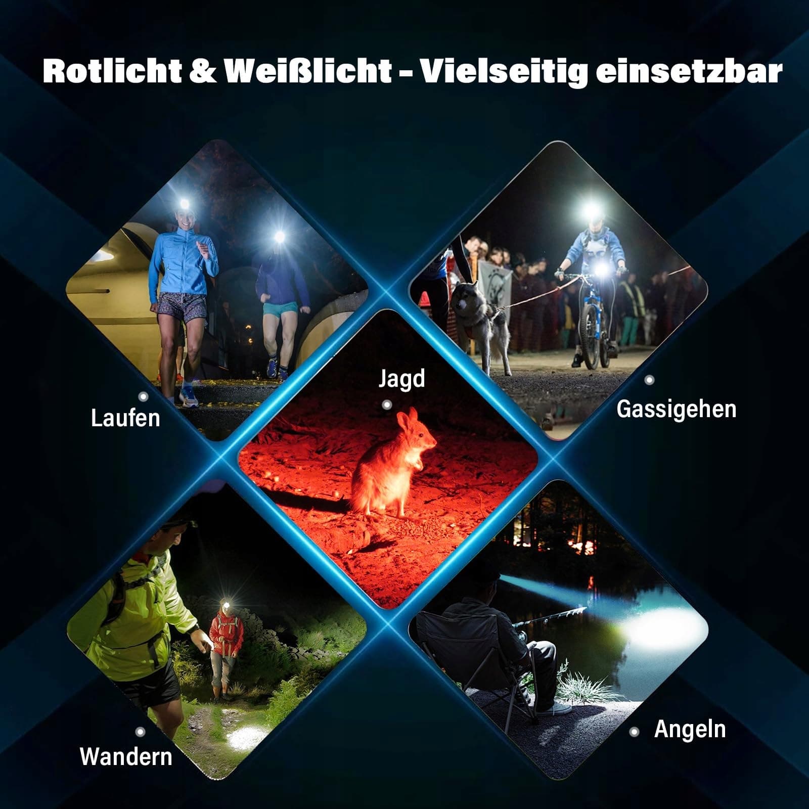 CSTEBOKE Latarka Czołowa Led Z Czerwonym Światłem Wodoodporna IP68
