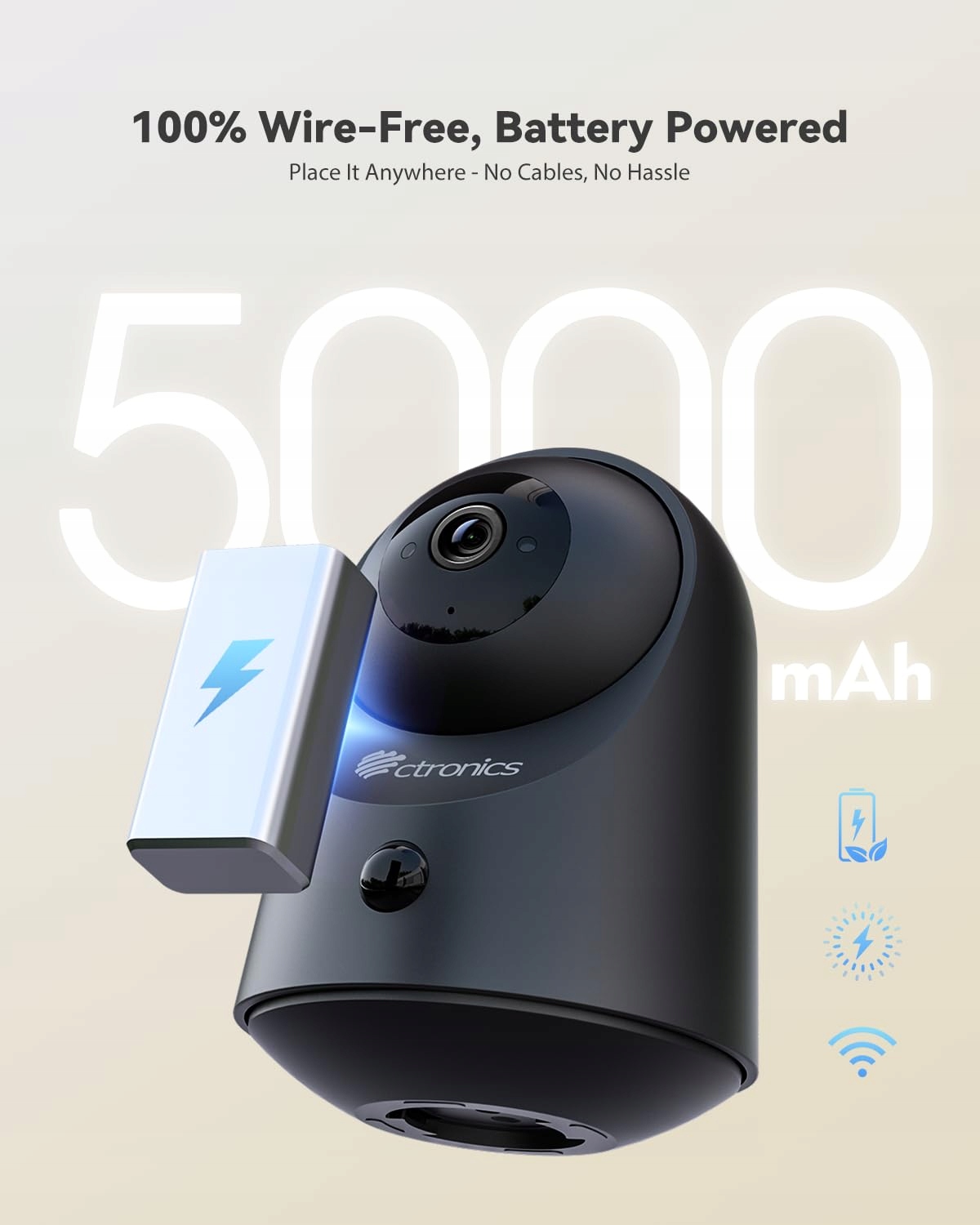 🔹 Elastyczna 100% bezprzewodowa instalacja Naprawdę bezprzewodowa z wbudowanym, ładowalnym akumulatorem – można montować w dowolnym miejscu i czasie, bez plątaniny kabli i wiercenia. Idealna dla najemców i zapracowanych gospodarstw domowych.