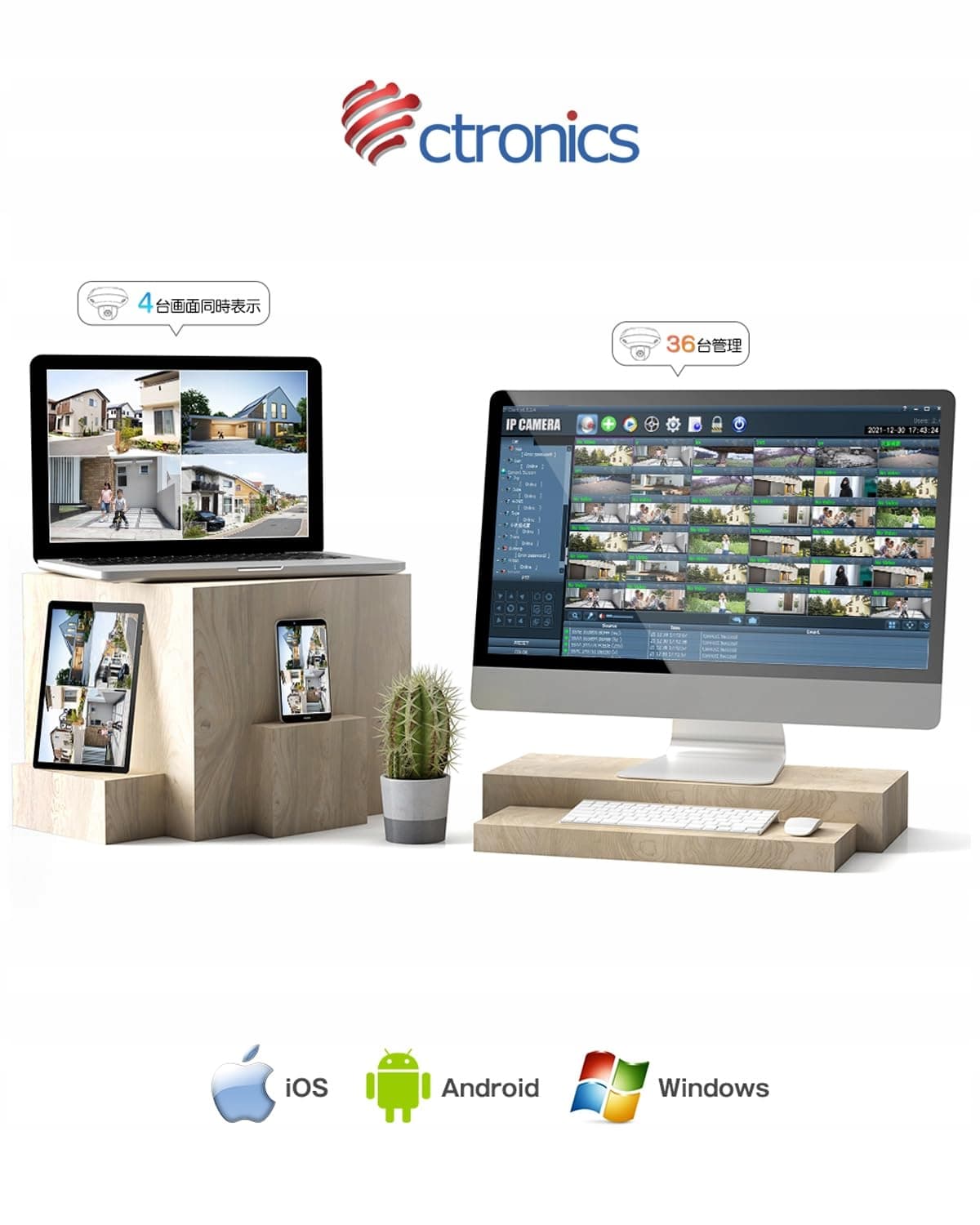 【Dostęp do PC i smartfona zawsze i wszędzie】 Ta kamera IP obsługuje zarówno darmową aplikację Ctronics, jak i klienta Windows (HIP2P), dzięki czemu możesz wygodnie uzyskać dostęp do obrazu na żywo i nagrań przez telefon lub komputer.
