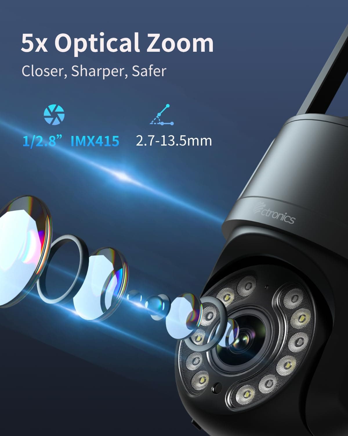 CTRONICS Kamera Zewnętrzna 4K 5X Zoom Kolorowy Nocny Widok Auto Śledzenie | Premium Supply