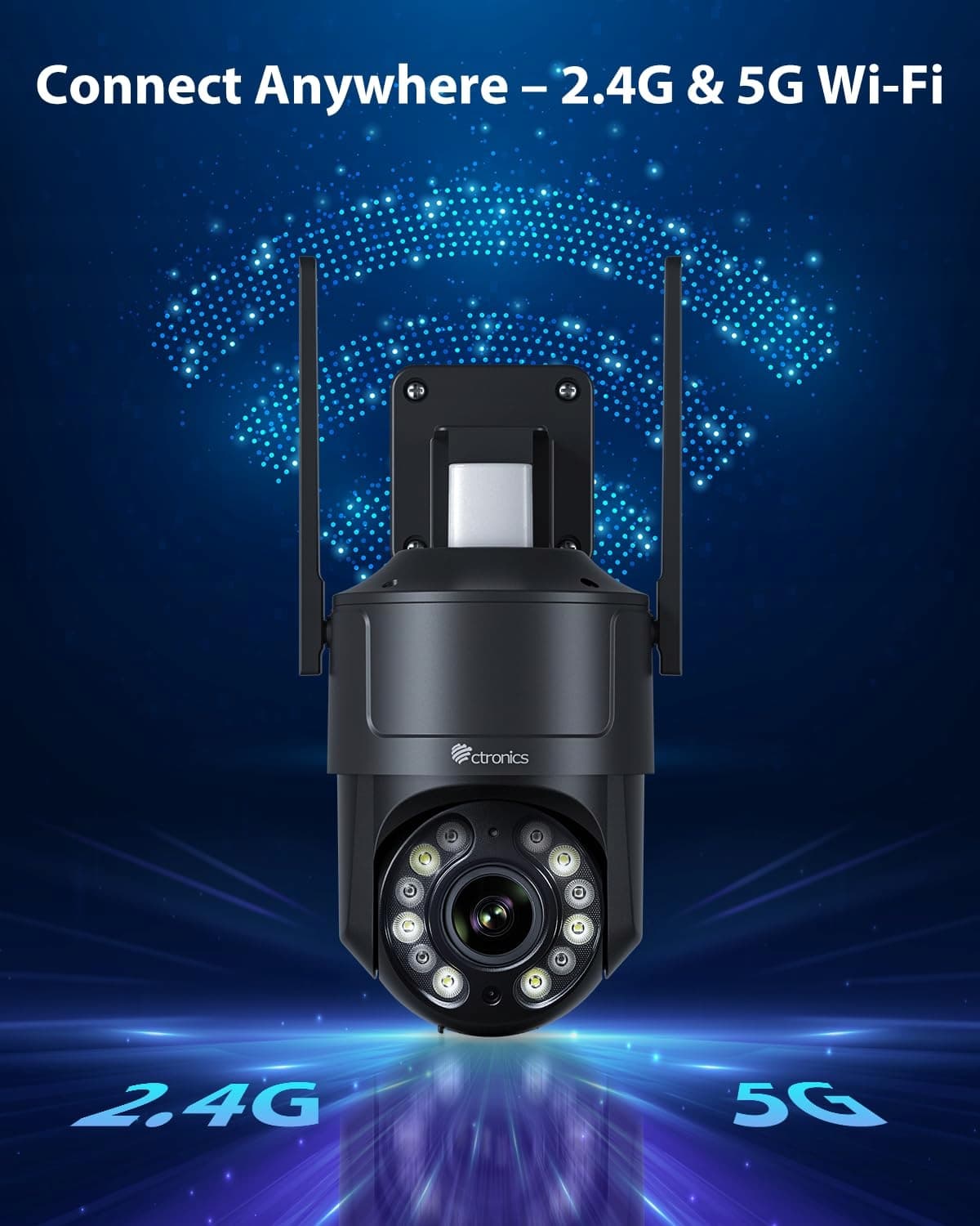 5️⃣ Elastyczny montaż i 5G/2,4G WLAN zdalny dostęp Możliwość montażu na ścianie lub suficie. Szybkie połączenie dwuzakresowe dla stabilnego streamingu na żywo. Steruj do 36 kamerami przez APP lub PC. Lokalna pamięć na kartę SD, FTP, NAS lub NVR – wszystko w jednym miejscu.