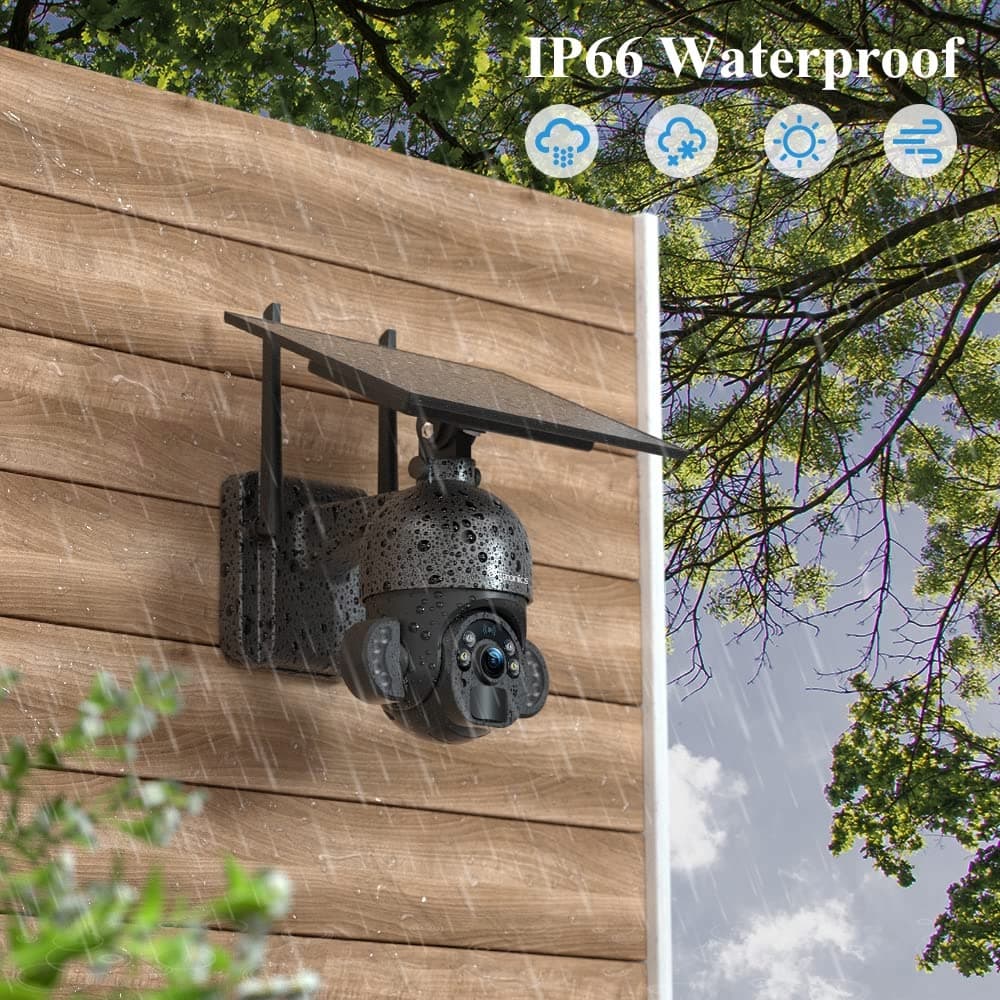 📸☀【Dwukierunkowe audio i wodoodporność IP66】Dzięki wbudowanemu mikrofonowi i głośnikowi możesz używać kamery PTZ WLAN do komunikacji z rodziną lub gośćmi w dowolnym czasie i miejscu. Kamera IP 2,5K 4MP solarna jest wyposażona w certyfikowaną obudowę odporną na warunki atmosferyczne IP66, dzięki czemu działa nawet w ekstremalnych warunkach pogodowych.