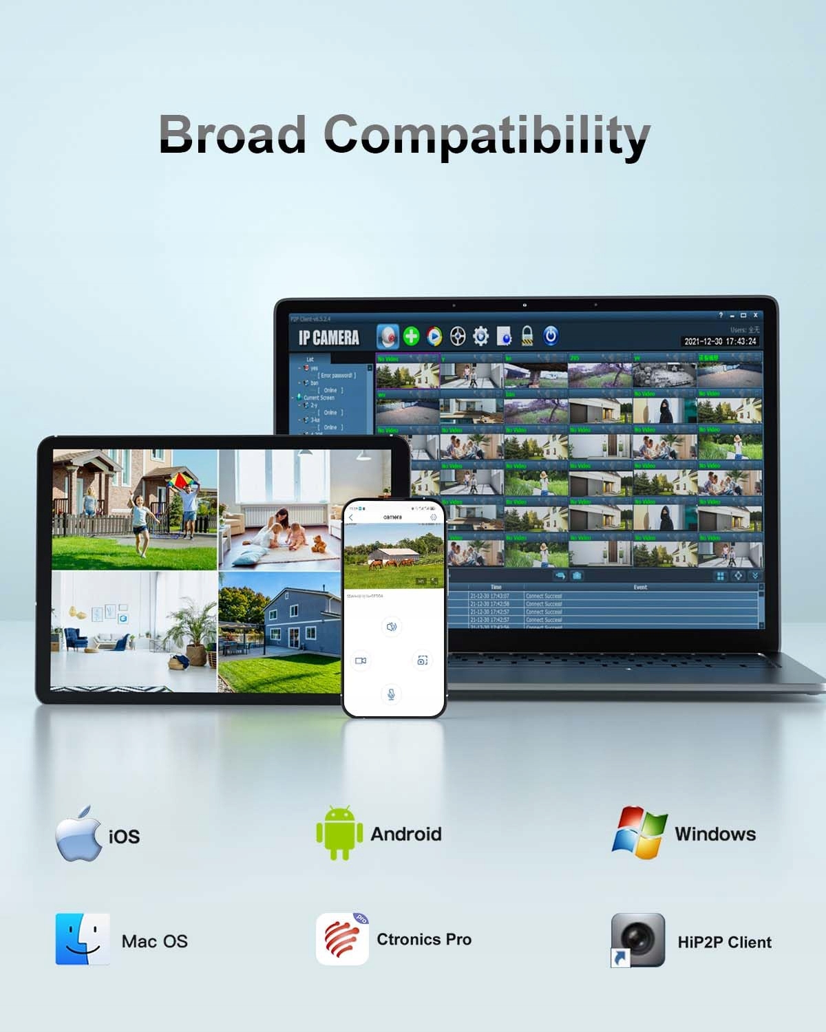 【Wykrywanie Osób i Automatyczne Śledzenie】 Ta kamera PTZ IP obsługuje wykrywanie osób, rozróżnia ruchy ludzkie od nieludzkich i redukuje fałszywe alarmy nawet o 95%. Gdy ta 5MP kamera monitoringu WLAN wykryje ruch humanoidalny, automatycznie go śledzi i wysyła alarm przez aplikację ''ctronics pro''.