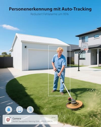 【Inteligentne śledzenie AI i dwukierunkowe audio】Dzięki zaawansowanemu wykrywaniu ludzi przez AI kamera monitoringu zewnętrznego precyzyjnie wykrywa ruch osób i automatycznie je śledzi. Jednocześnie otrzymujesz powiadomienia w czasie rzeczywistym w aplikacji ''Ctronics Pro'' na smartfonie. Przez wbudowany mikrofon i głośnik możesz rozmawiać z rodziną lub odstraszać potencjalnych intruzów – dla maksymalnego bezpieczeństwa.