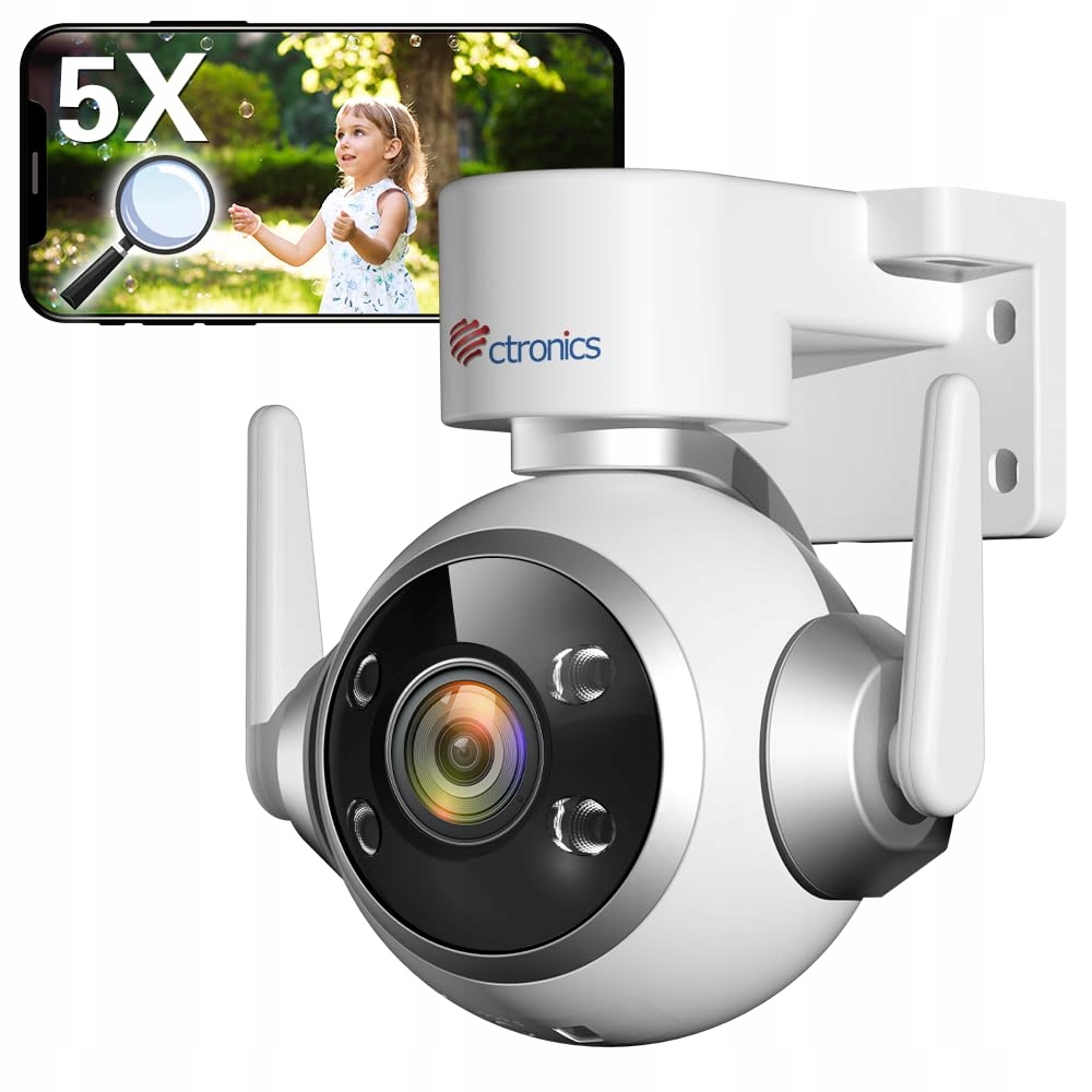 Ctronics 5X Kamera do monitoringu z optycznym zoomem na zewnątrz WLAN 2,4/5GHz, PTZ IP Kamera Outdoor z wykrywaniem osób i automatycznym śledzeniem, 30M kolorowa nocna wizja, dwukierunkowe audio, 3 metody instalacji, IP66