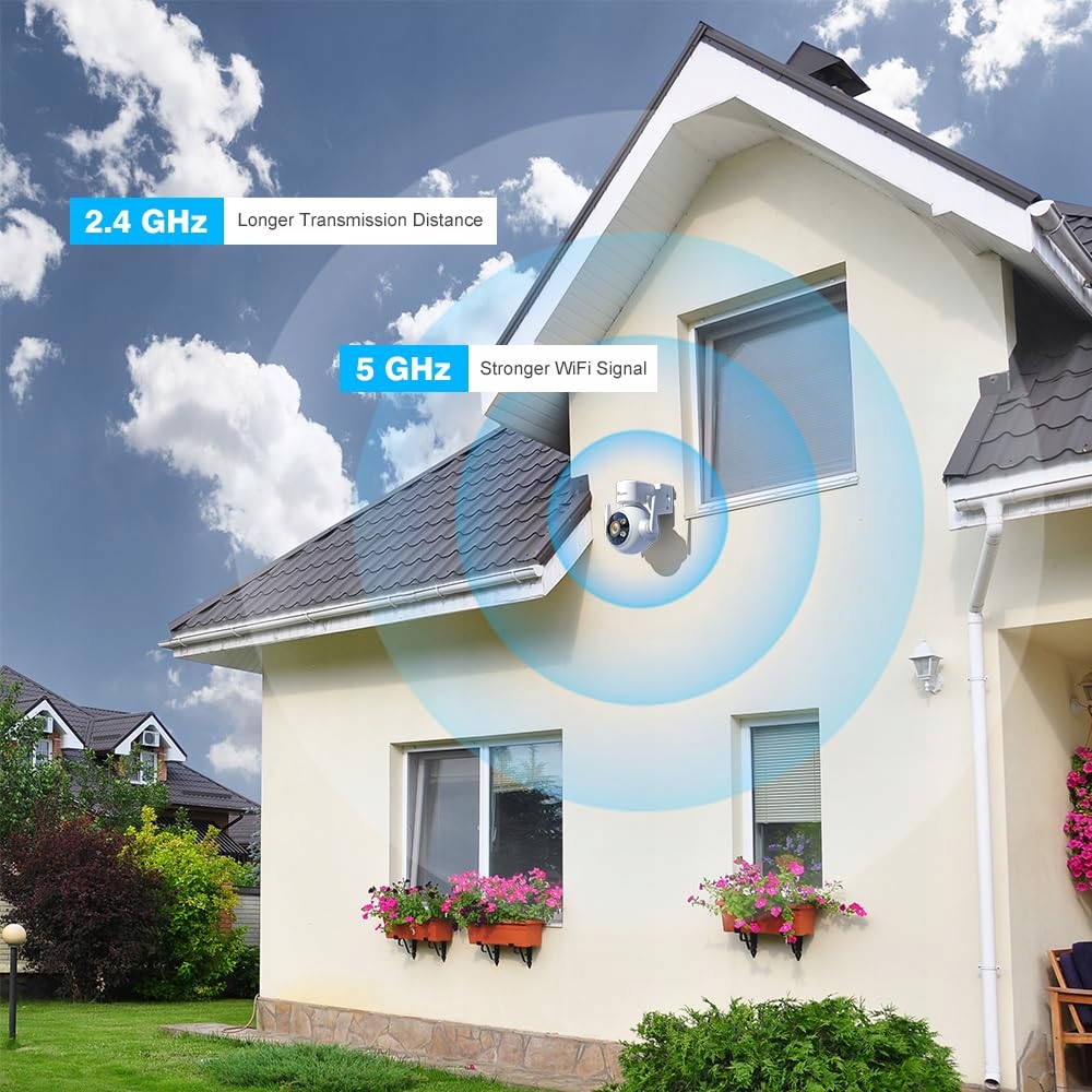 【Dwupasmowe Wi-Fi i zdalny dostęp】Kamera IP obsługuje dwupasmowe częstotliwości Wi-Fi dla dodatkowych opcji sieciowych. 2,4 GHz jest odpowiednie dla kamer oddalonych od routera, podczas gdy 5 GHz jest idealne dla kamer blisko routera. Kamera do monitoringu nagrywa wideo 24/7 na karcie TF (do 64 GB, karta nie jest dołączona), kompatybilna z iOS/Android, Mac/Windows (HIP2P) oraz e-mailem.