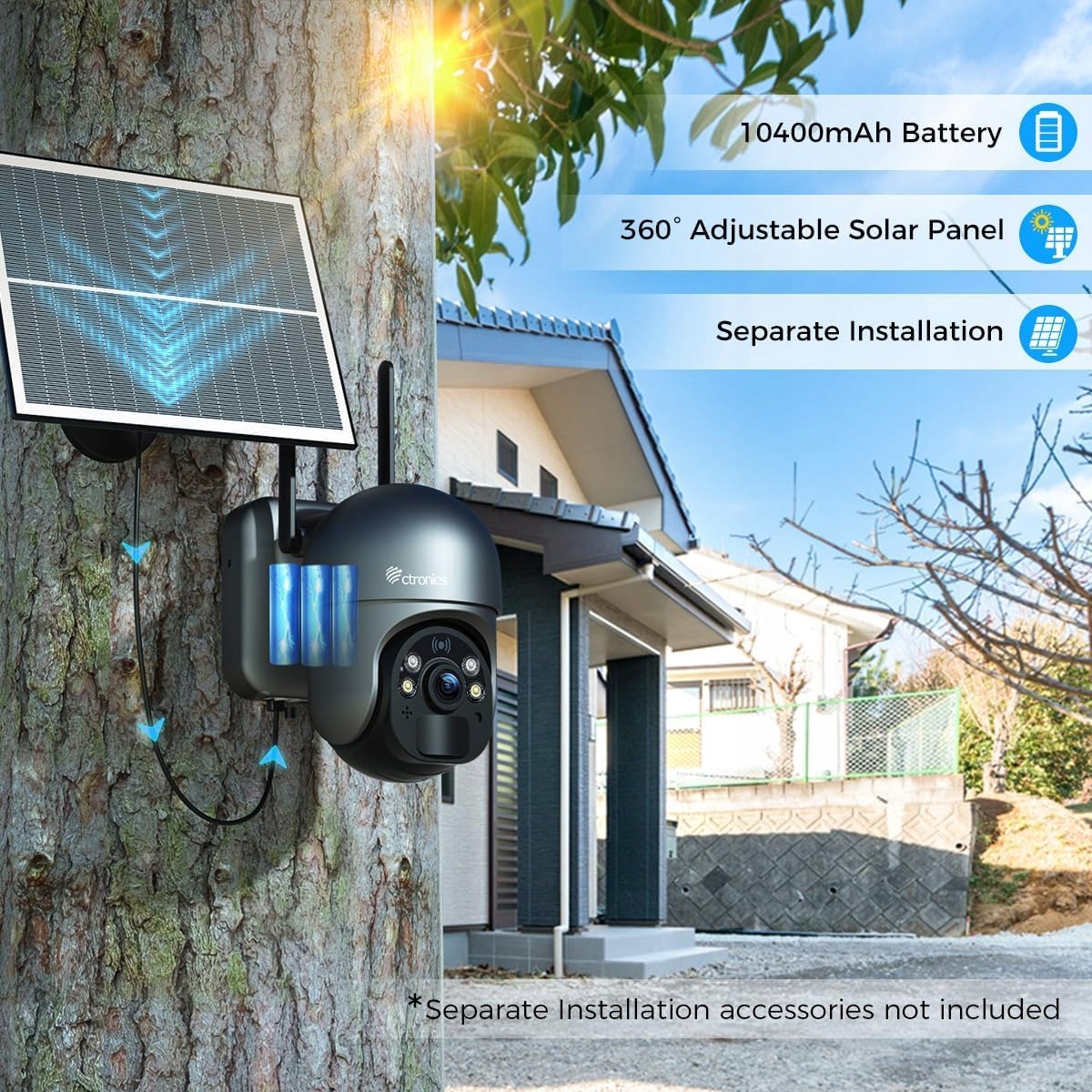 3️⃣ Dwie opcje instalacji dla maksymalnej elastyczności Brak podwójnego wiercenia i osobnego montażu kamery oraz panelu solarnego. Zintegrowany design upraszcza instalację i chroni ścianę przed niepotrzebnymi uszkodzeniami. Dla jeszcze większej elastyczności panel solarny można również zamontować osobno, aby lepiej pochłaniać światło słoneczne i zapewnić efektywne ładowanie oraz niezawodne zasilanie podczas codziennego użytkowania na zewnątrz.