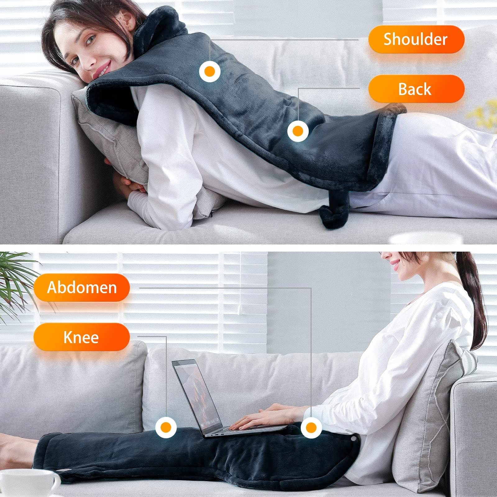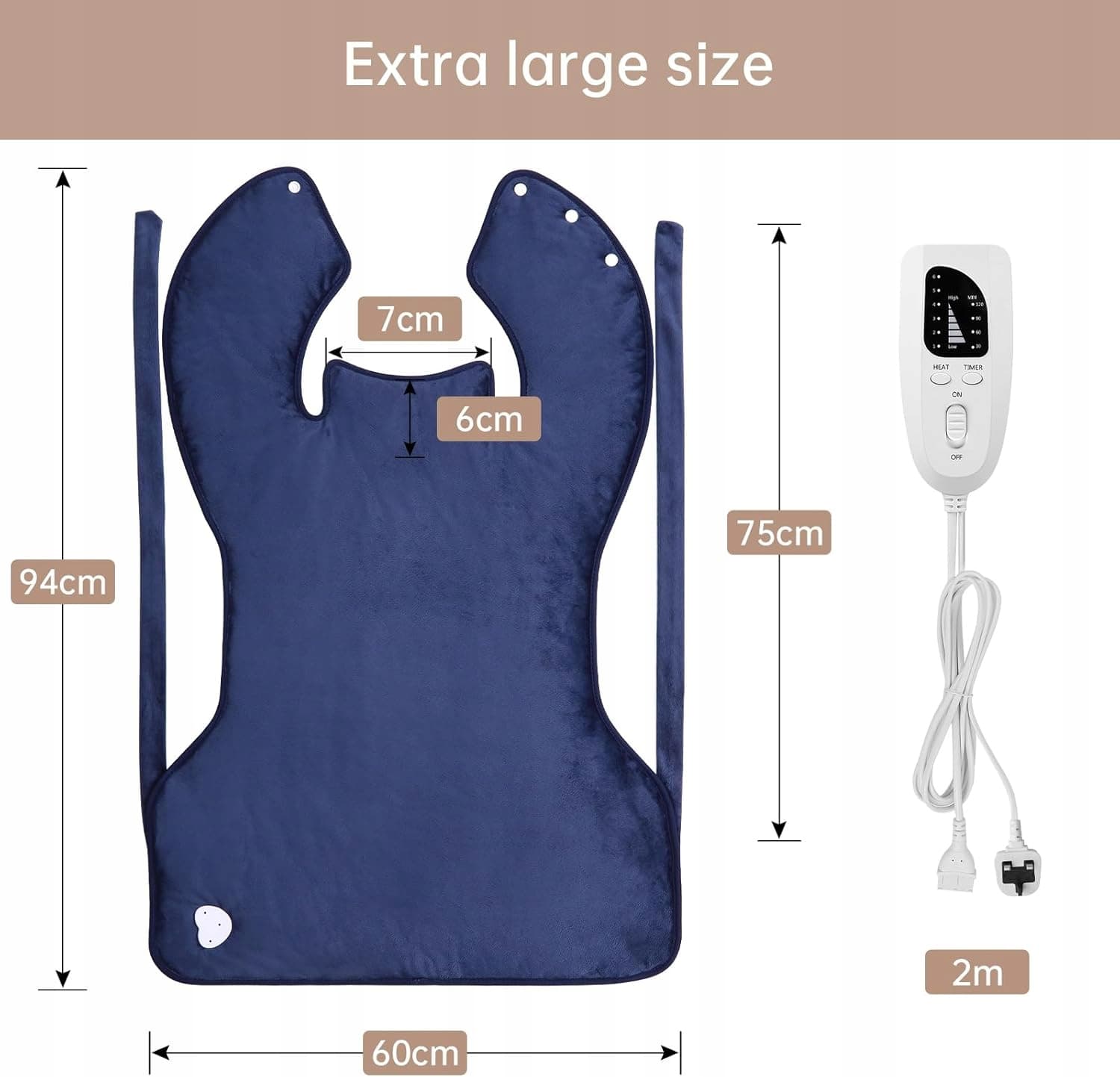 Ekstra duża ulga dla całego ciała: Ekstra duża poduszka grzewcza o wymiarach 60 x 85 cm zapewnia pełne i wygodne pokrycie. Pokrowiec grzewczy dostarcza kojące ciepło, aby złagodzić zmęczenie. Poduszka grzewcza została zaprojektowana głównie dla ramion i szyi, ale może być również elastycznie stosowana na plecy, talię, brzuch, nogi i więcej.