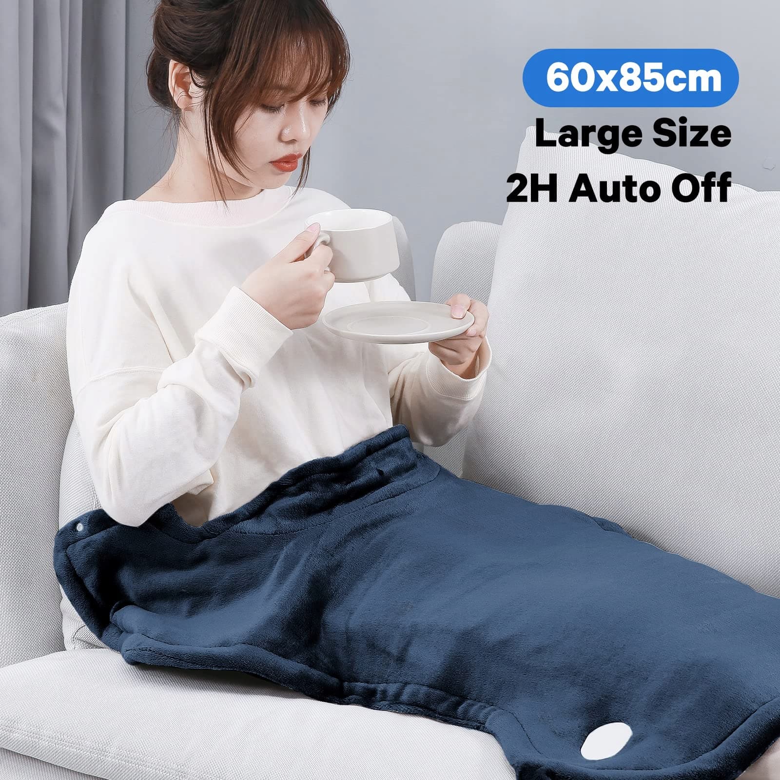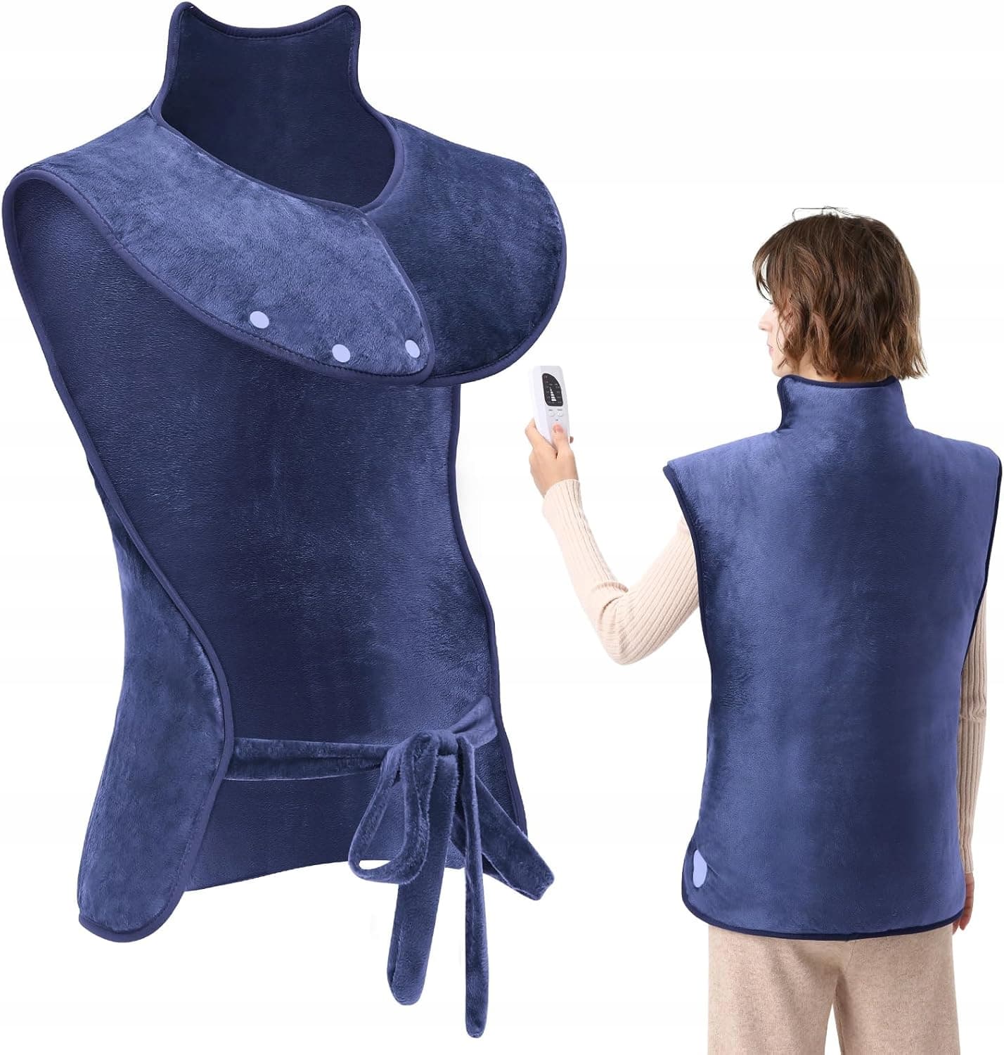 Elektryczna poduszka grzewcza na plecy, ramiona, szyję, koc grzewczy 60 x 85 cm, 4 regulowane temperatury, automatyczne wyłączanie po 120 min i ochrona przed przegrzaniem, nadająca się do prania w pralce (Niebieski)
