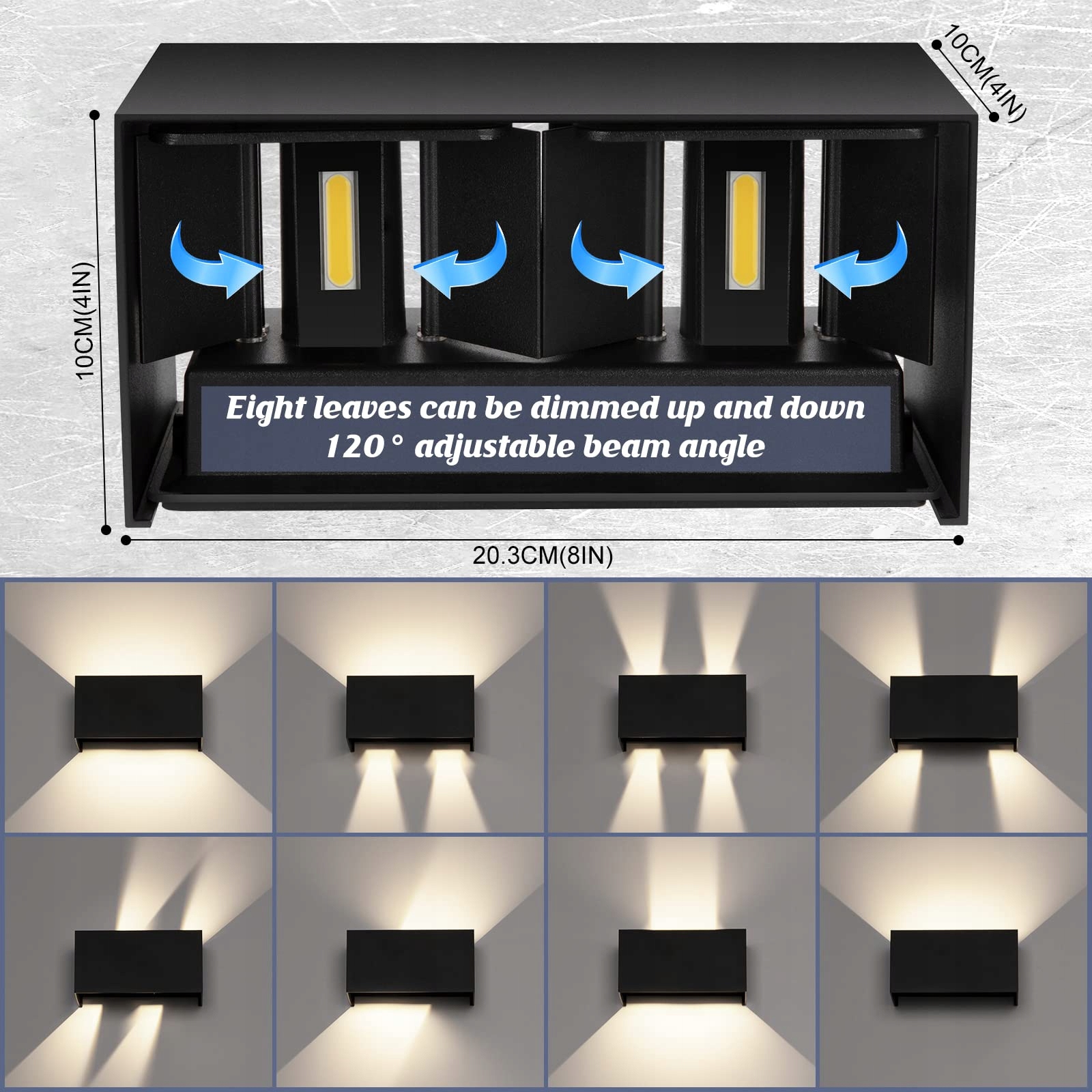 [Regulowany strumień, ulepszona wersja]Dwurzędowy design sprawia, że kąt ściemniania kinkietu jest bardziej zróżnicowany. 6000K ciepłe białe światło dla romantycznej atmosfery. Możesz tworzyć różne formy światła. Zapewnia piękne efekty świetlne do oświetlenia lub dekoracji.