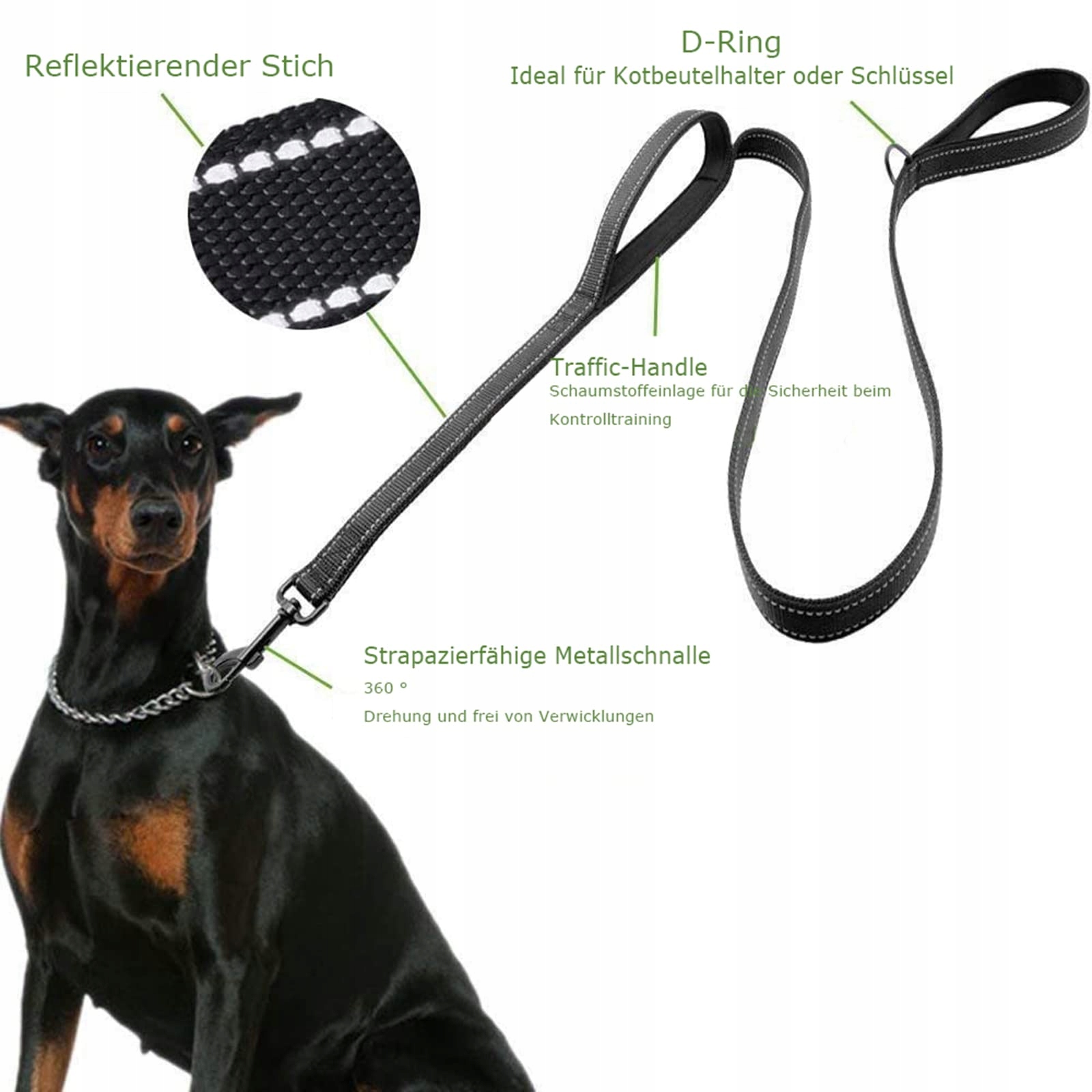 Smycz dla dużych i średnich psów z wbudowanym krótkim prowadzeniem, odblaskowa smycz, 2 uchwyty z miękką wyściółką, 1,5 metra smycz