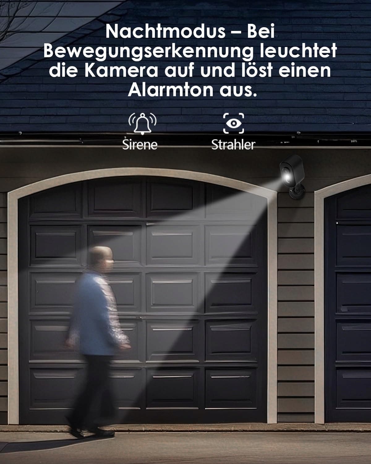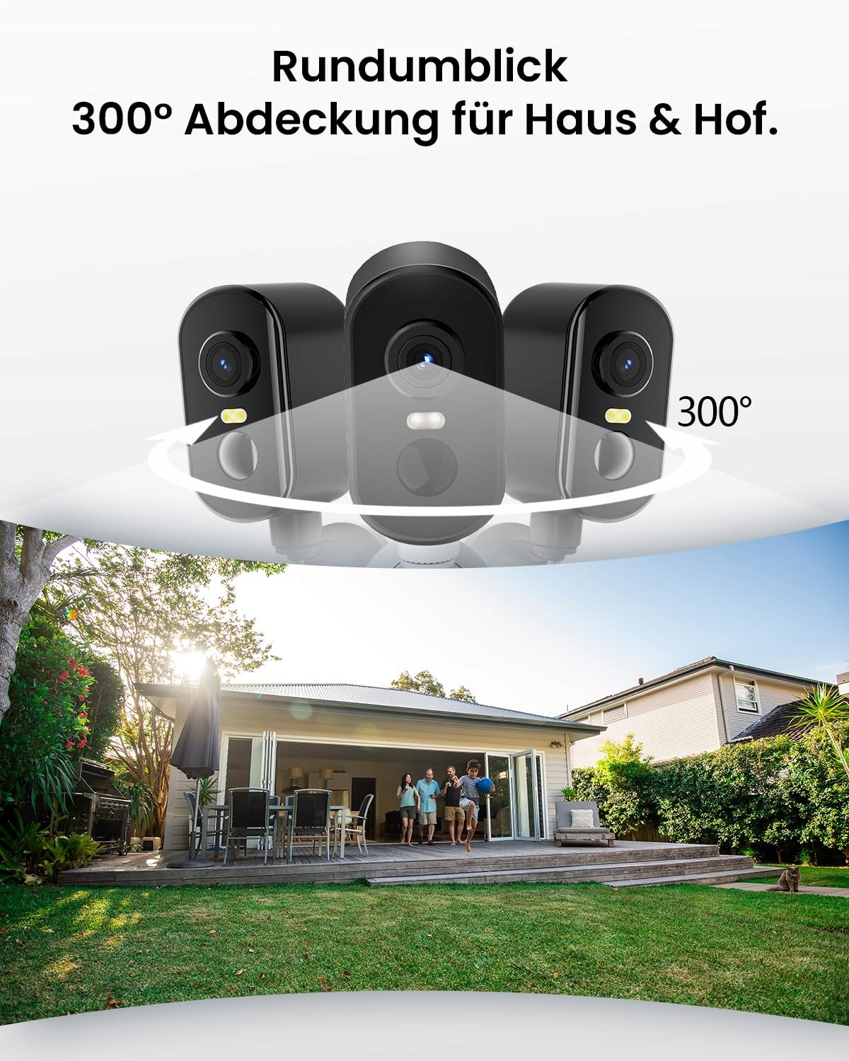 Rozdzielczość 2K QHD i kolorowy tryb nocny: Rozdzielczość 2K QHD zapewnia ostre obrazy i płynne transmisje na żywo. Dzięki wbudowanym diodom podczerwieni i zewnętrznemu białemu światłu nawet w ciemności ważne szczegóły są wyraźnie uchwycone.
