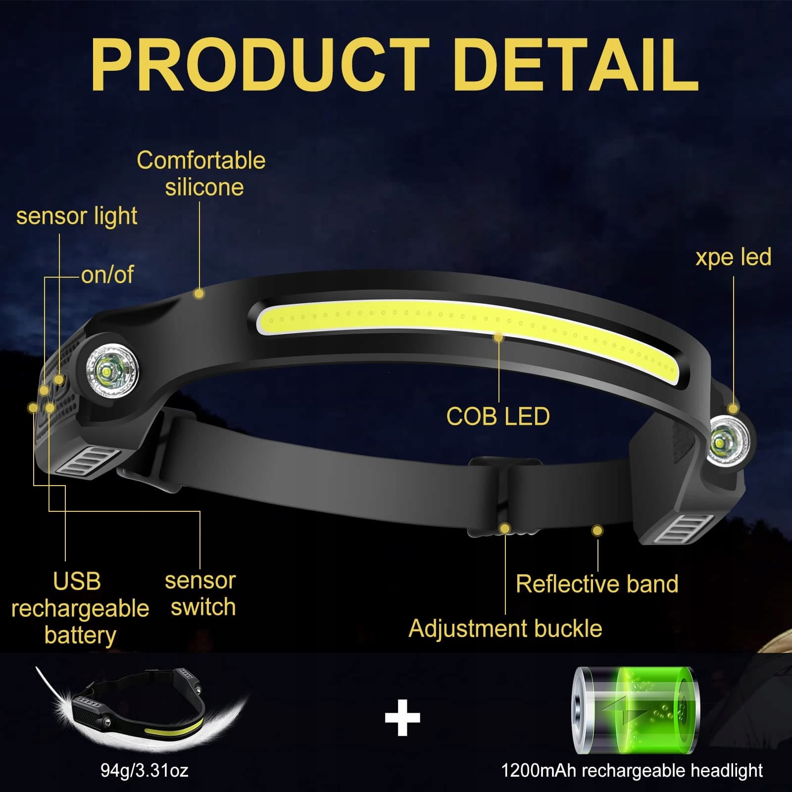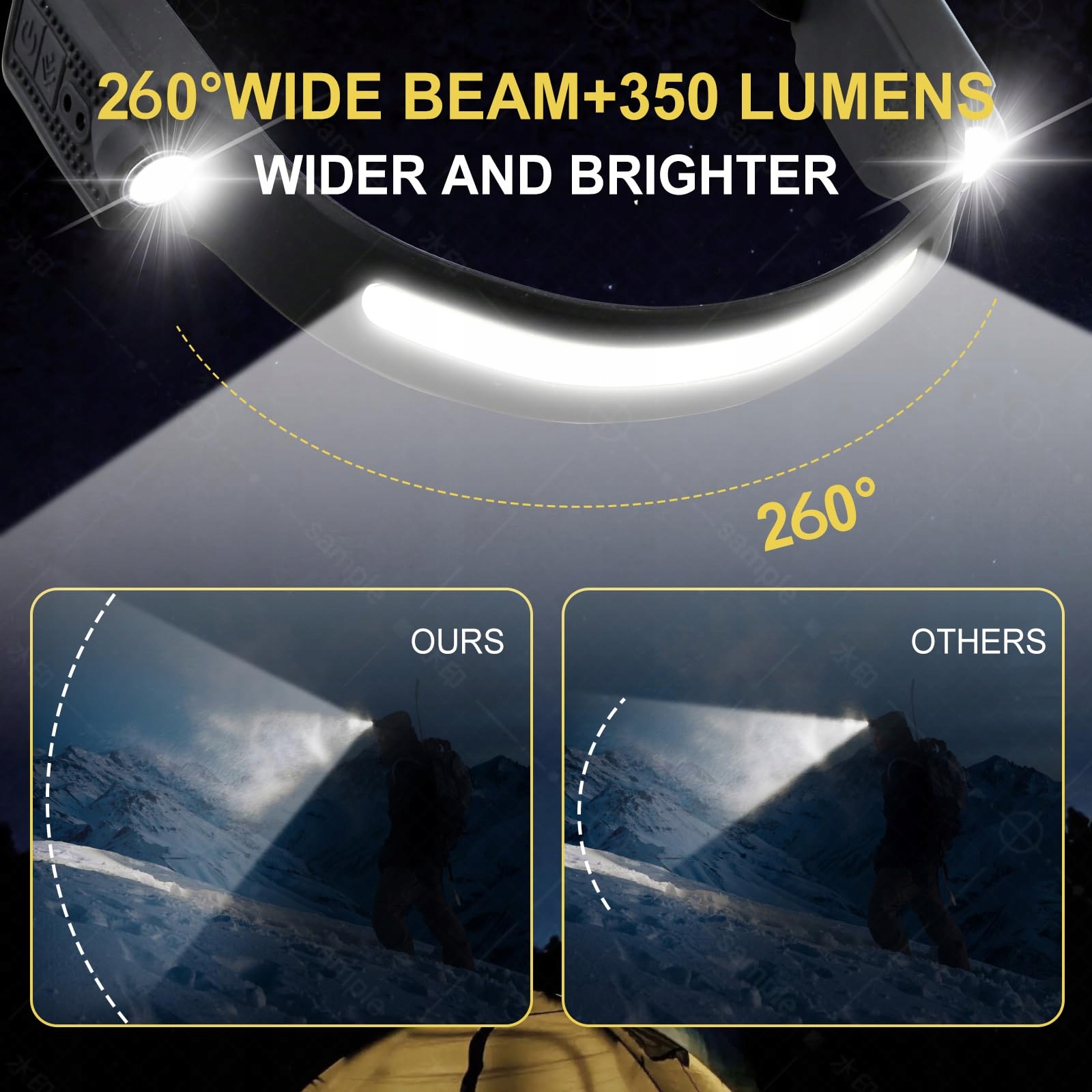 [Unikalne podwójne światło z rozszerzonym widokiem]Nasza latarka czołowa z podwójnymi latarkami obok 230 ° paska świetlnego. Podwójny design lampy sprawia, że wiązka świeci jaśniej i dalej niż inne latarki czołowe. Ta mała latarka czołowa jest przenośna i można ją łatwo schować w torbie lub plecaku.