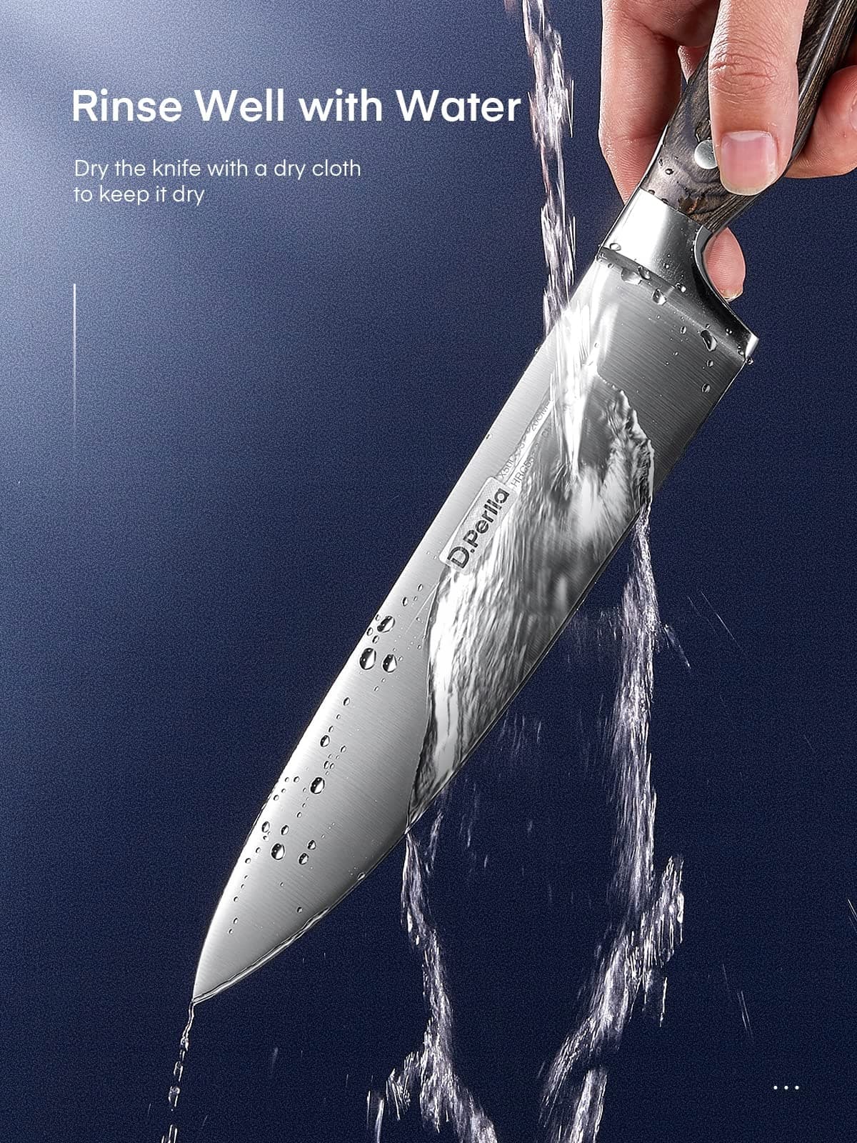 Można myć w zmywarce, zaleca się mycie ręczne: Zestaw noży nadaje się do mycia w zmywarce, jednak zaleca się delikatne mycie ręczne, ponieważ agresywne środki czyszczące mogą na dłuższą metę zaszkodzić nożom.