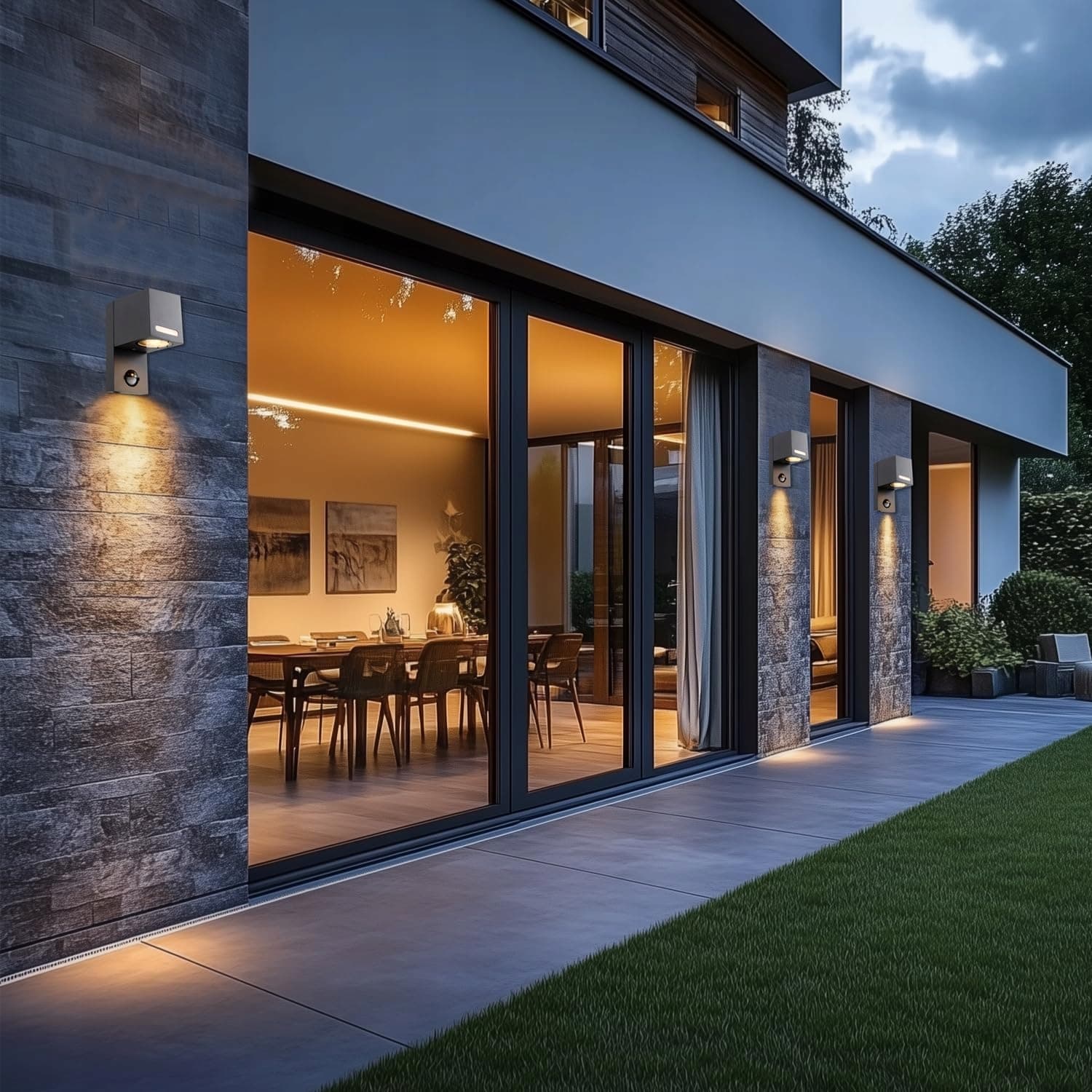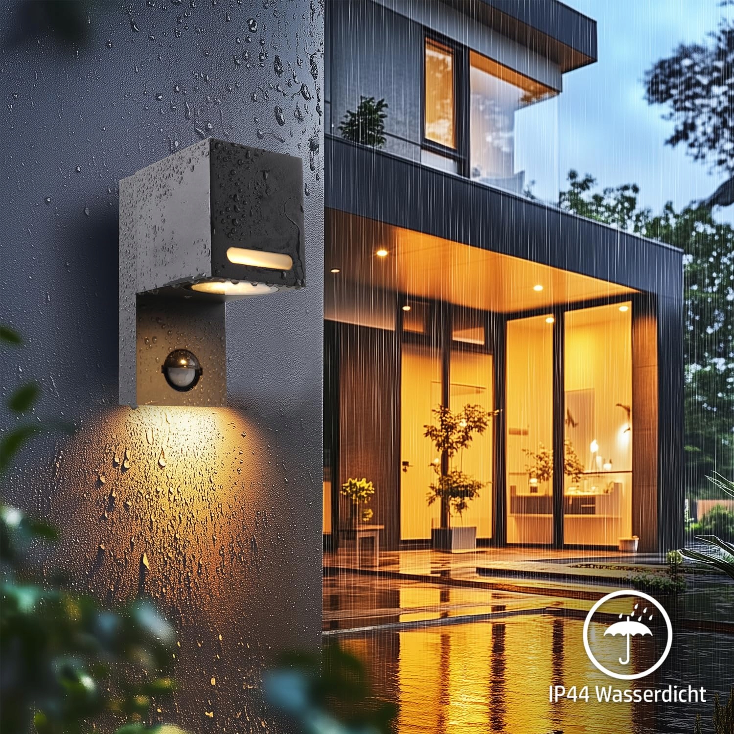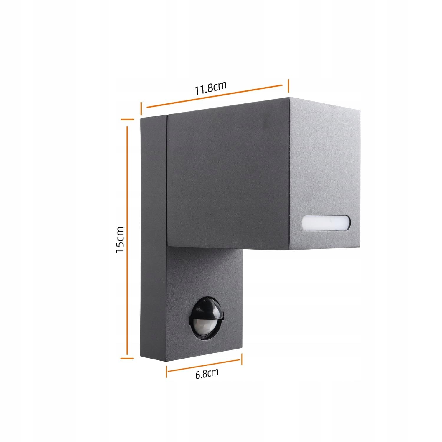 Zintegrowany czujnik ruchu – Lampa zewnętrzna z czujnikiem ruchu reaguje na ruch w promieniu 4–8 m. Światło włącza się automatycznie i wyłącza po opuszczeniu strefy. Zasięg czujnika i czas świecenia można indywidualnie ustawić.