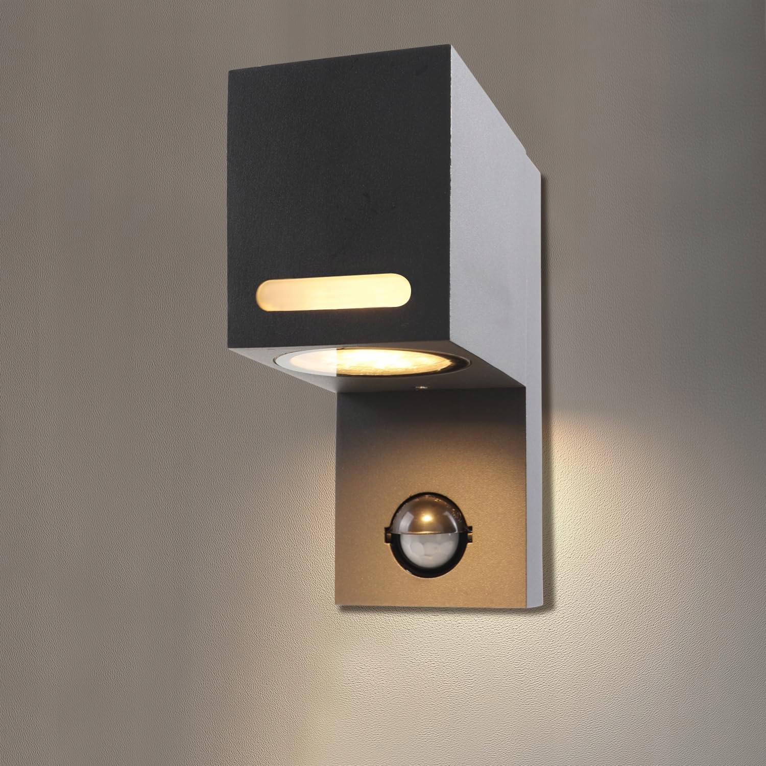Odporna na rdzę i warunki atmosferyczne zgodnie z IP44 – Wykonana z trwałego stopu aluminium z antracytowo-szarym, matowym lakierem proszkowym. Kinkiet IP44 jest doskonale przystosowany do użytku na zewnątrz, niezależnie od pogody.